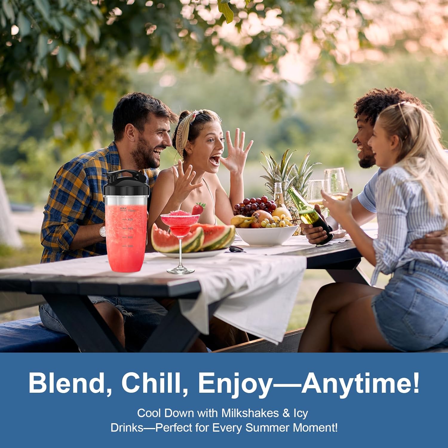 3 Versatile Cup Sizes: Your personal blender includes 3 cups in different sizes (23 oz, 32 oz, and 37 oz full capacity) to suit a variety of blending needs. Each cup features clear measurement lines, allowing you to easily track the amount of ingredients added. Durable and drop-resistant, these cups come with 2 flat lids and 1 to-go lid for easy portability, making them perfect for taking your beverages on the go