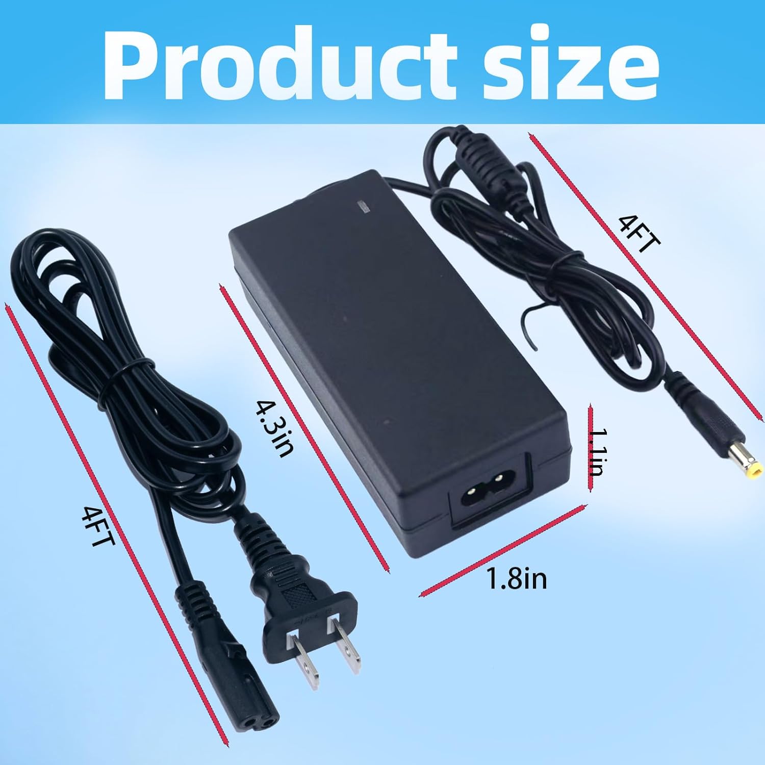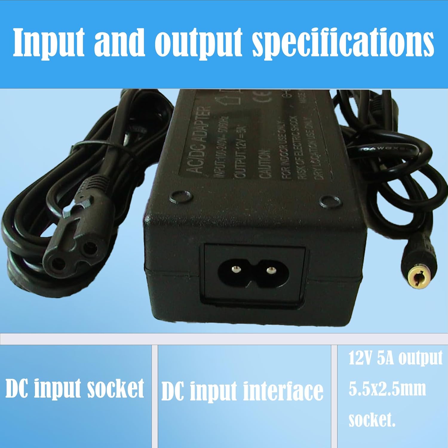 Enter 100-240V 50/60HZ Output 12V 5000m Energy Twine Size: 99 in / 8.2FT EffiWorking Temperatureciency 96% Working Temperature 0 ~ 55℃ ℃Storage Temperature -18 ~ 55℃ Ambient Humidity 0 ~ 80% Non-Condensation Good Chip Overheat Safety Good Chip Over Charging Safety Good Chip Over Voltage Safety Good Chip Over Present Safety