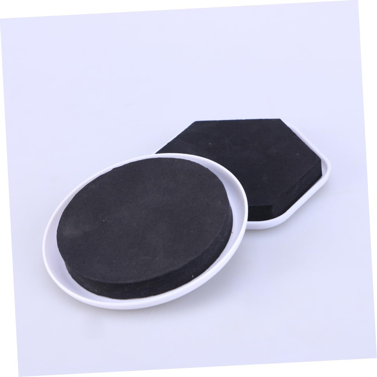 Furnishings movers–half of 16pcs of furnishings sliders are circle and the remaining half are hexagon,reusable furnishings sliders