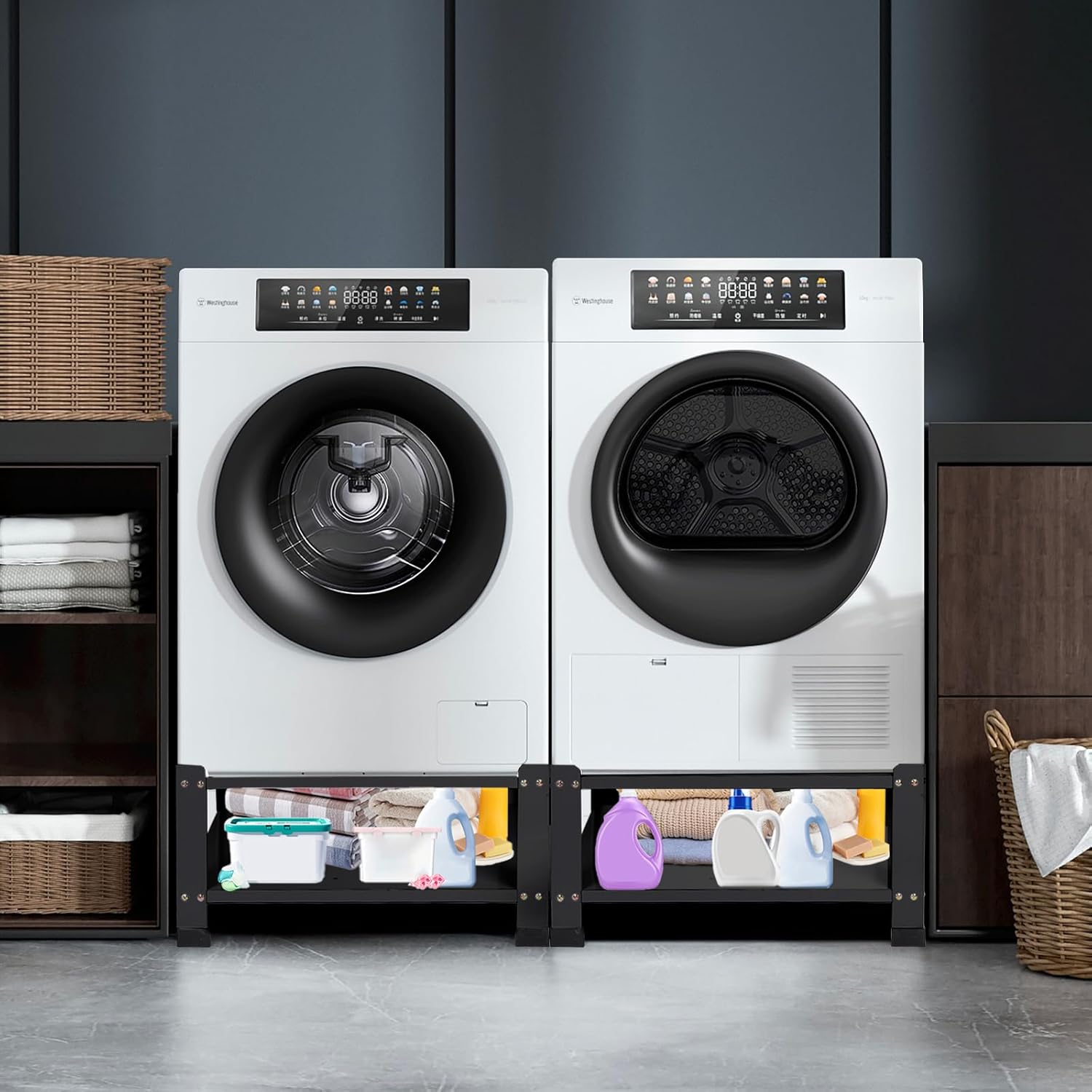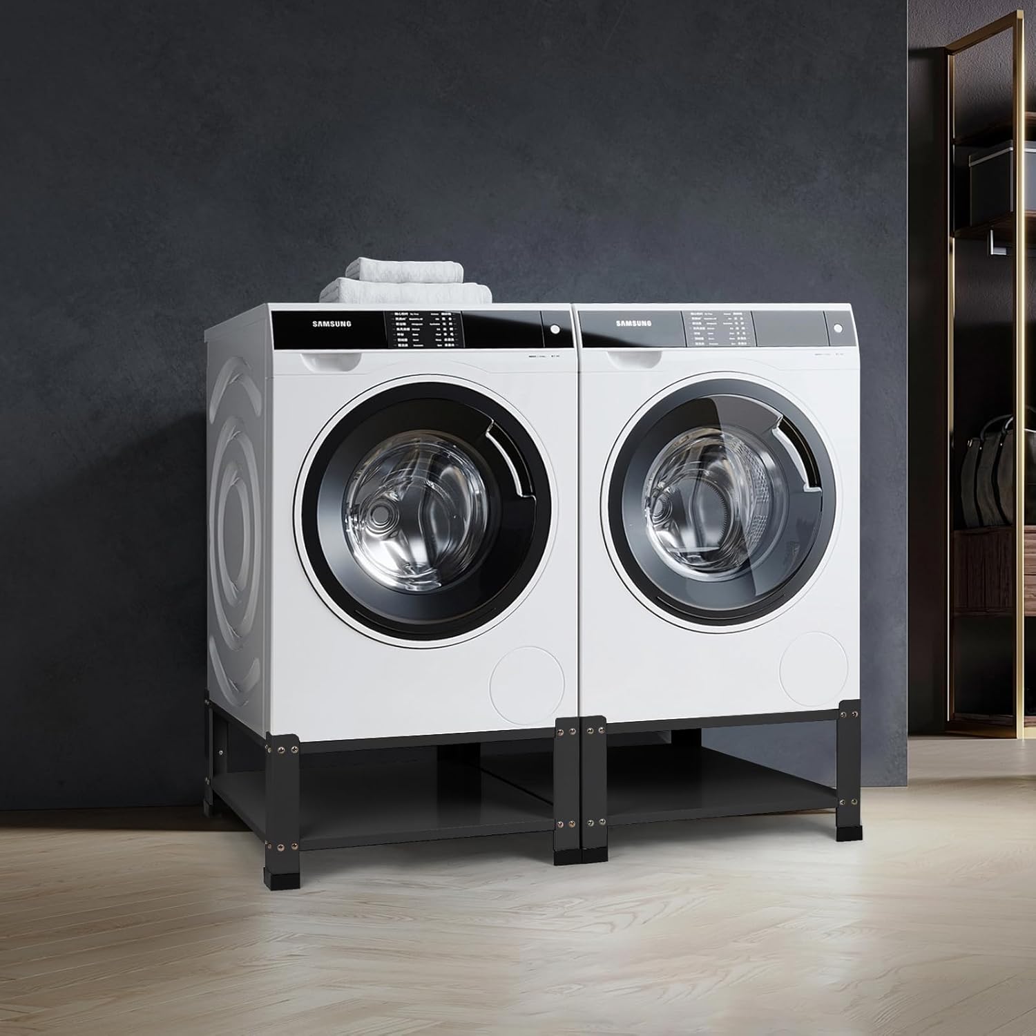 Metallic Washer Dryer Stand: It comes with two pedestals and relative assemble equipment. Simple to assemble. Please contact us you probably have any issues with the laundry pedestal