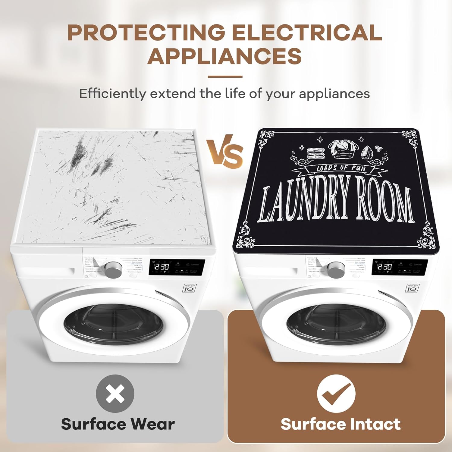 ELEGANT AND SIMPLE HOME DECORATION: The covers of washing machines and dryers characteristic fashionable fashion as the primary sample, permitting at no cost pairing with varied residence decor types