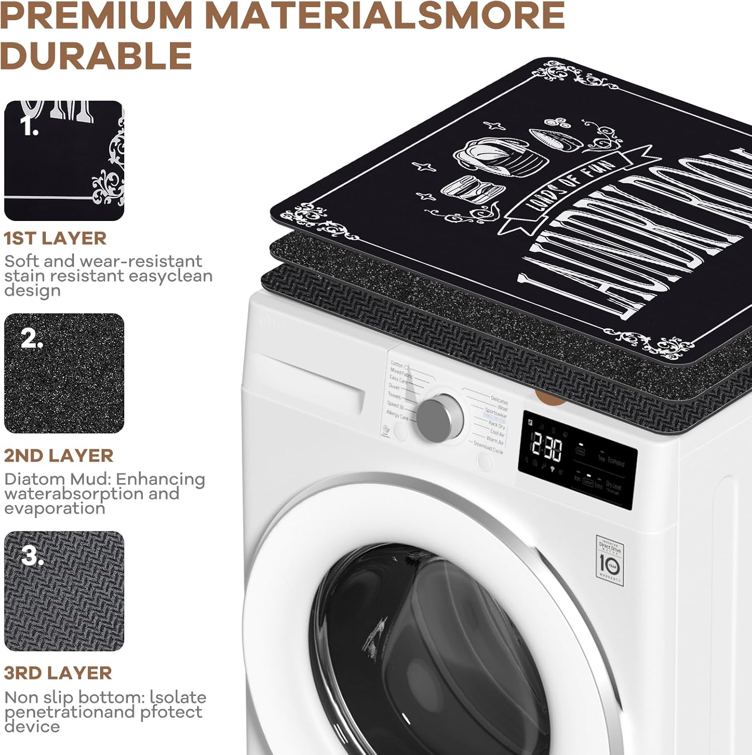 SUPERIOR QUALITY MATERIALS: pierpel Washer dryer high protector comfortable, wear-resistant, robust absorption of water, the underside materials is fabricated from diatom rubber, breathable, non-slip, may be mounted,sturdy