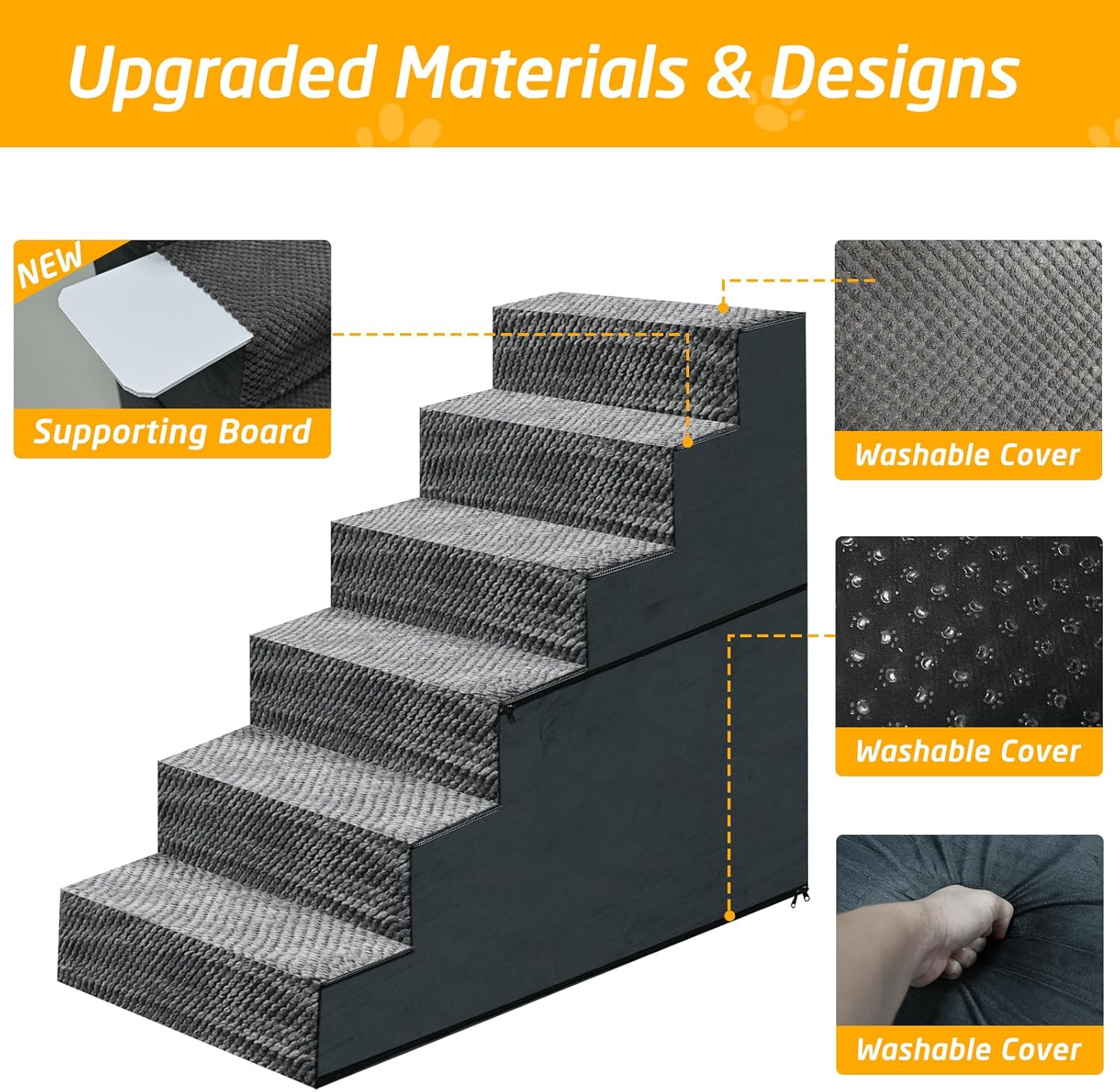 【Designed for Excessive Beds】: This canine staircase has 6 steps with a top of 28 inches, designed for use instantly on the sting of a mattress, couch or different furnishings, making it straightforward for canine to climb as much as excessive locations. Beneficial for pets weighing 60 kilos and underneath.