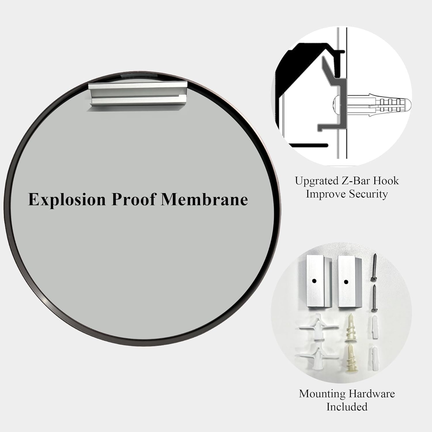 【Explosion-proof membrane】A full-coverage backing of shatter-resistant movie that retains glass safe in case of breakage. Even when the circle wall mirror is unintentionally broken by exterior forces, the glass won’t splash out.