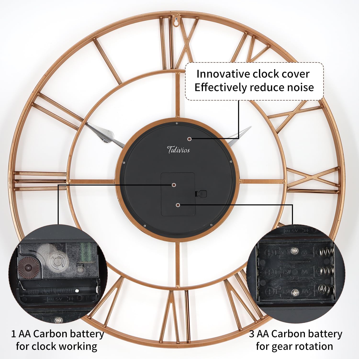 Exact Quartz Motion: Massive wall clock is manufactured from steel body, plastic gears and precision quartz motion. Farmhouse wall clock is 1.6 inches thick and really textured. After mounting front room clock on the wall, it can run easily and sturdy.
