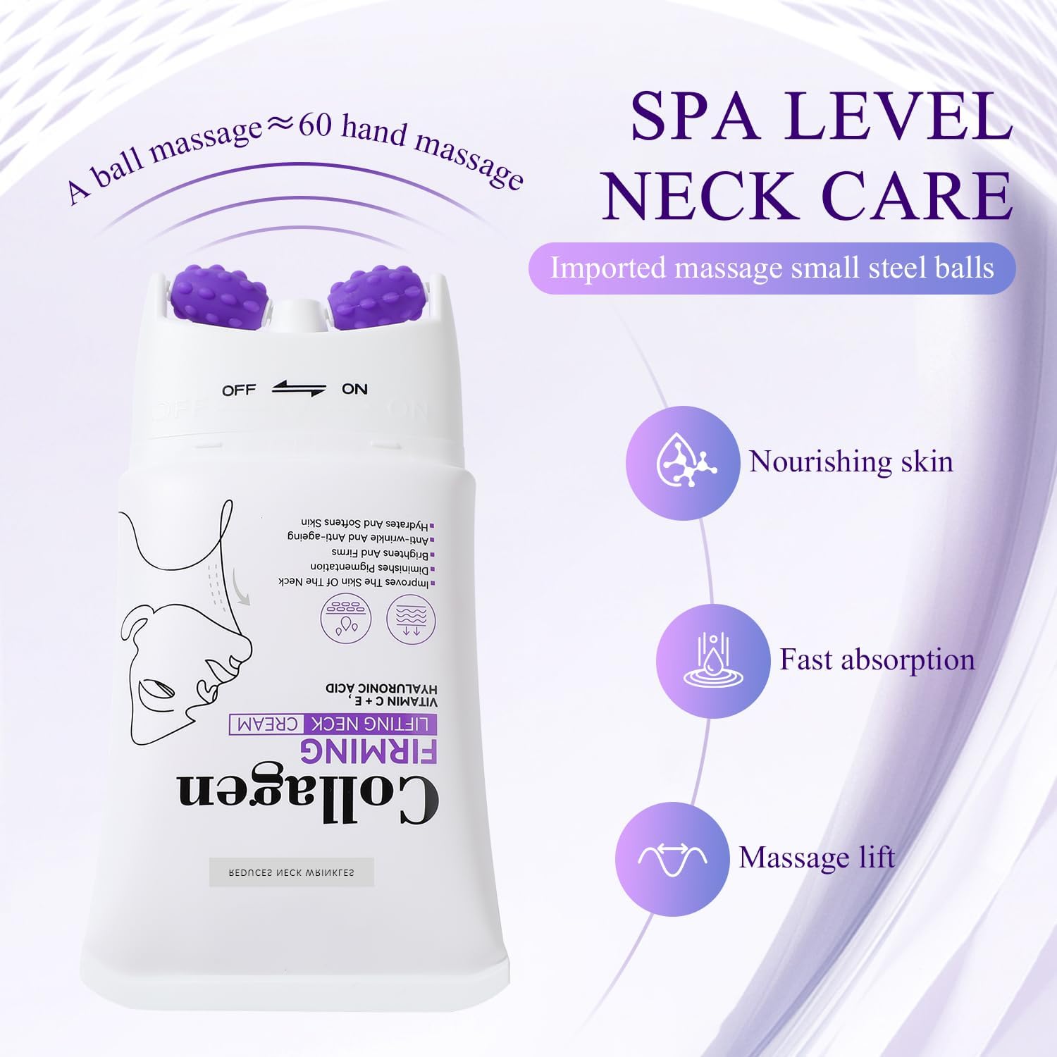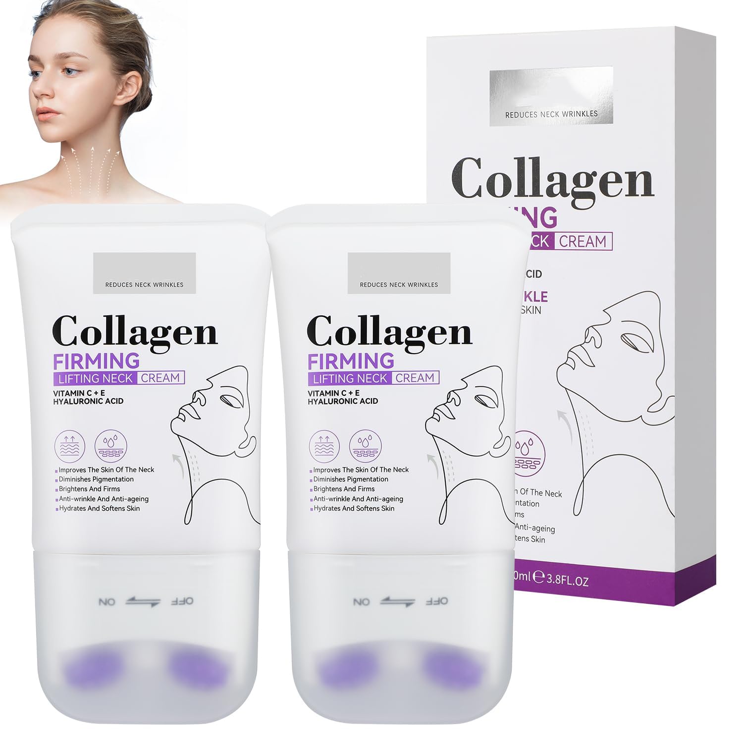 2Pcs Neck Collagen Cream with Curler,Carry Neck Firming Cream, for Tigh…