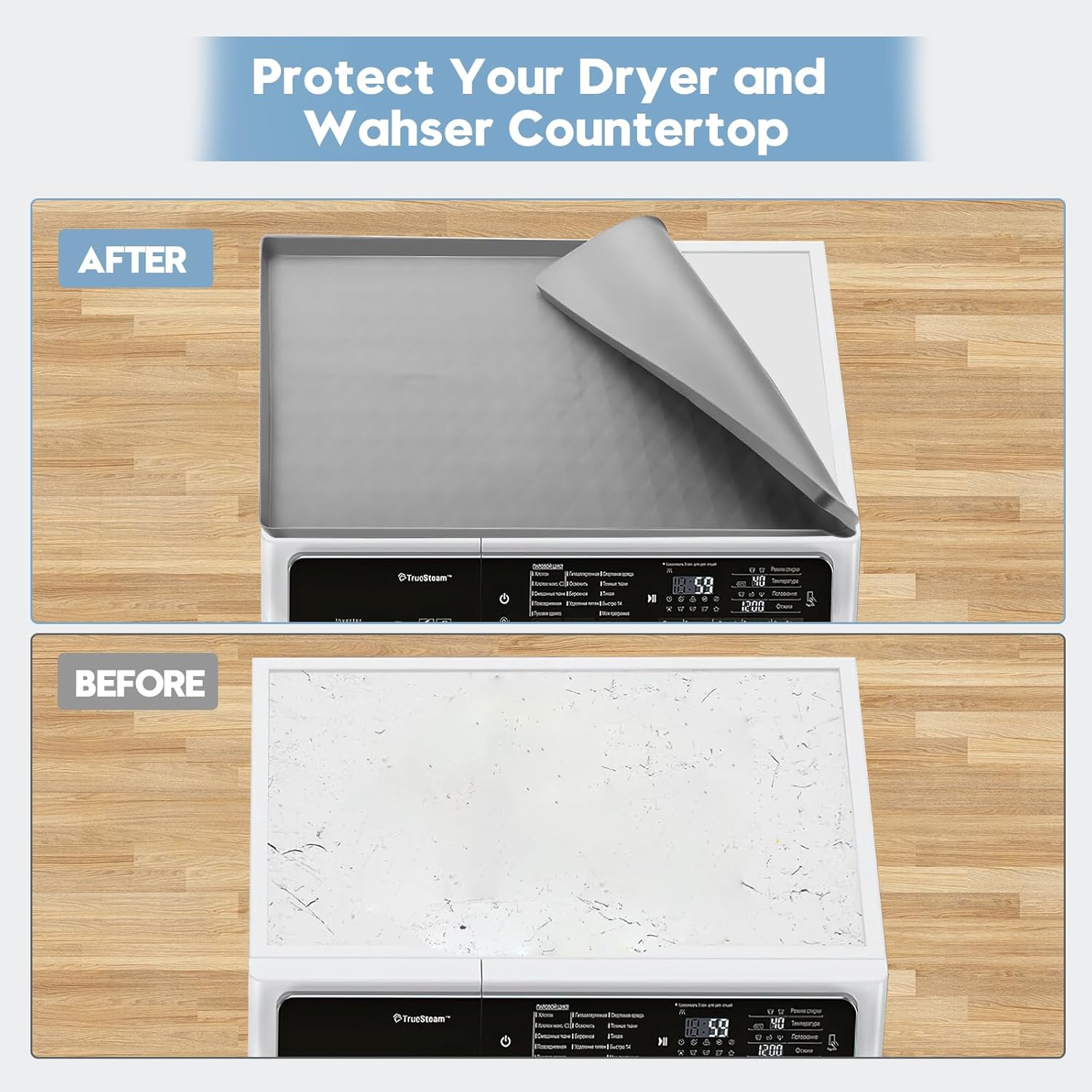 ANTI SLIP AND HEAT-RESISTANT: Our dryer countertop single protecting pad has an anti slip floor to forestall your laundry necessities from slipping off throughout use. Laundry topper for washer and dryer just isn’t solely waterproof, but in addition heat-resistant, and may stay intact even below excessive temperature situations. The warmth resistance of silicone materials permits it to be safely used with a sizzling dryer, offering complete safety on your home equipment.