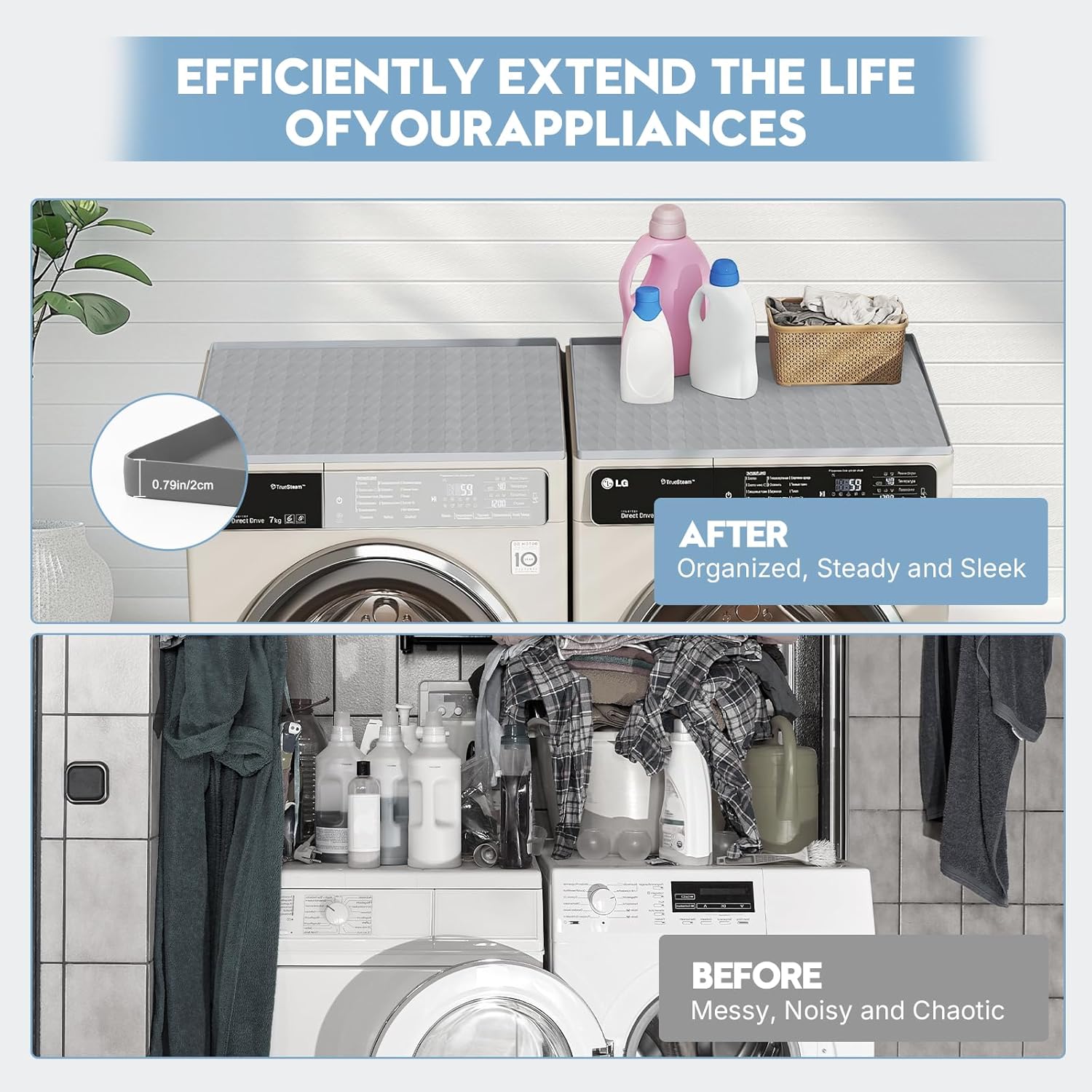 DURABLE SILICONE RUBBER STRUCTURE: These washer dryer topper protecting pads are fabricated from high-quality silicone rubber, recognized for its sturdiness. This materials helps shield the highest of your equipment towards scratches, dents, and is proof against each day put on, whereas additionally serving to to take care of a clear and tidy look. The underside is fabricated from diatomaceous-infused rubber, which is breathable, non-slip, stays securely in place, and is resilient, contributing to conserving your home equipment clear and nicely maintained over time.