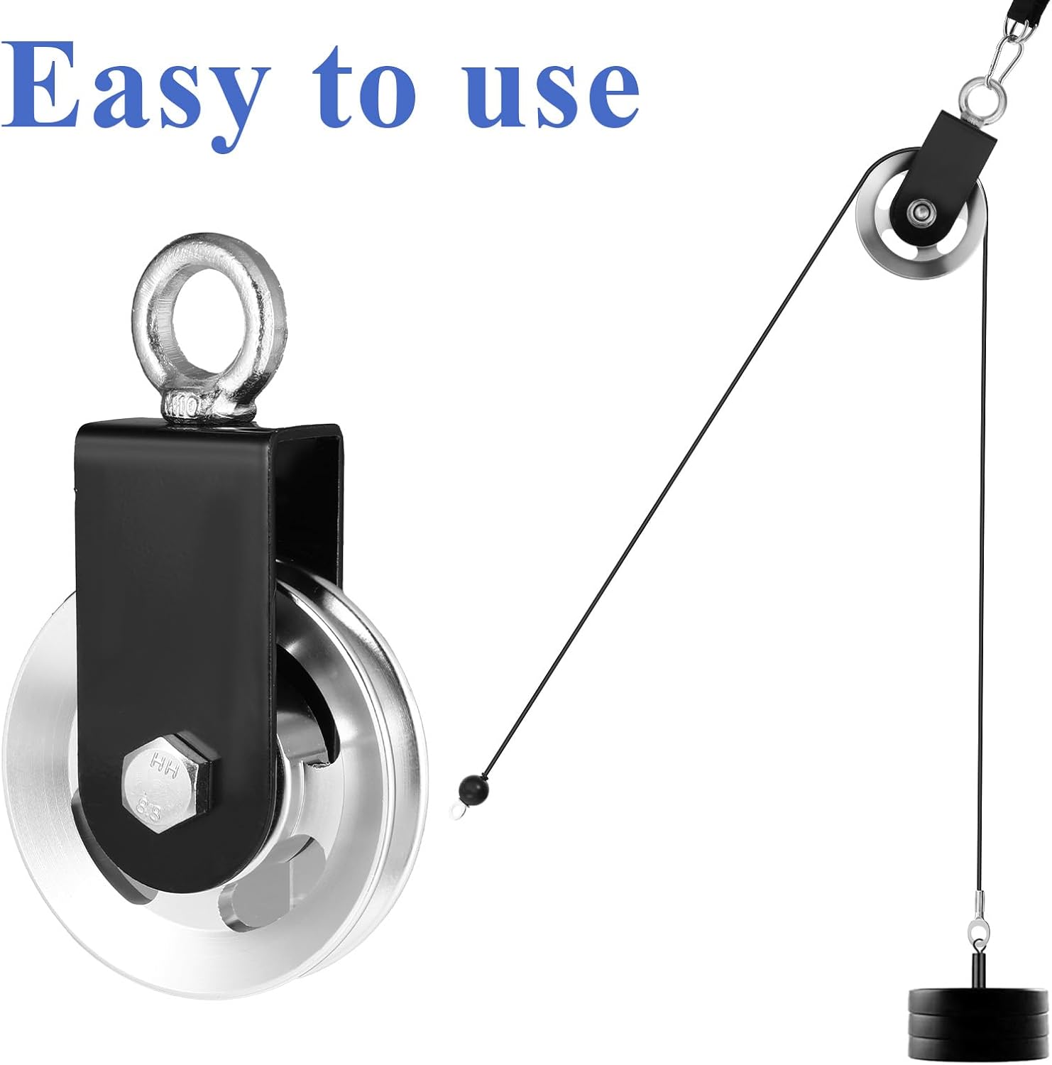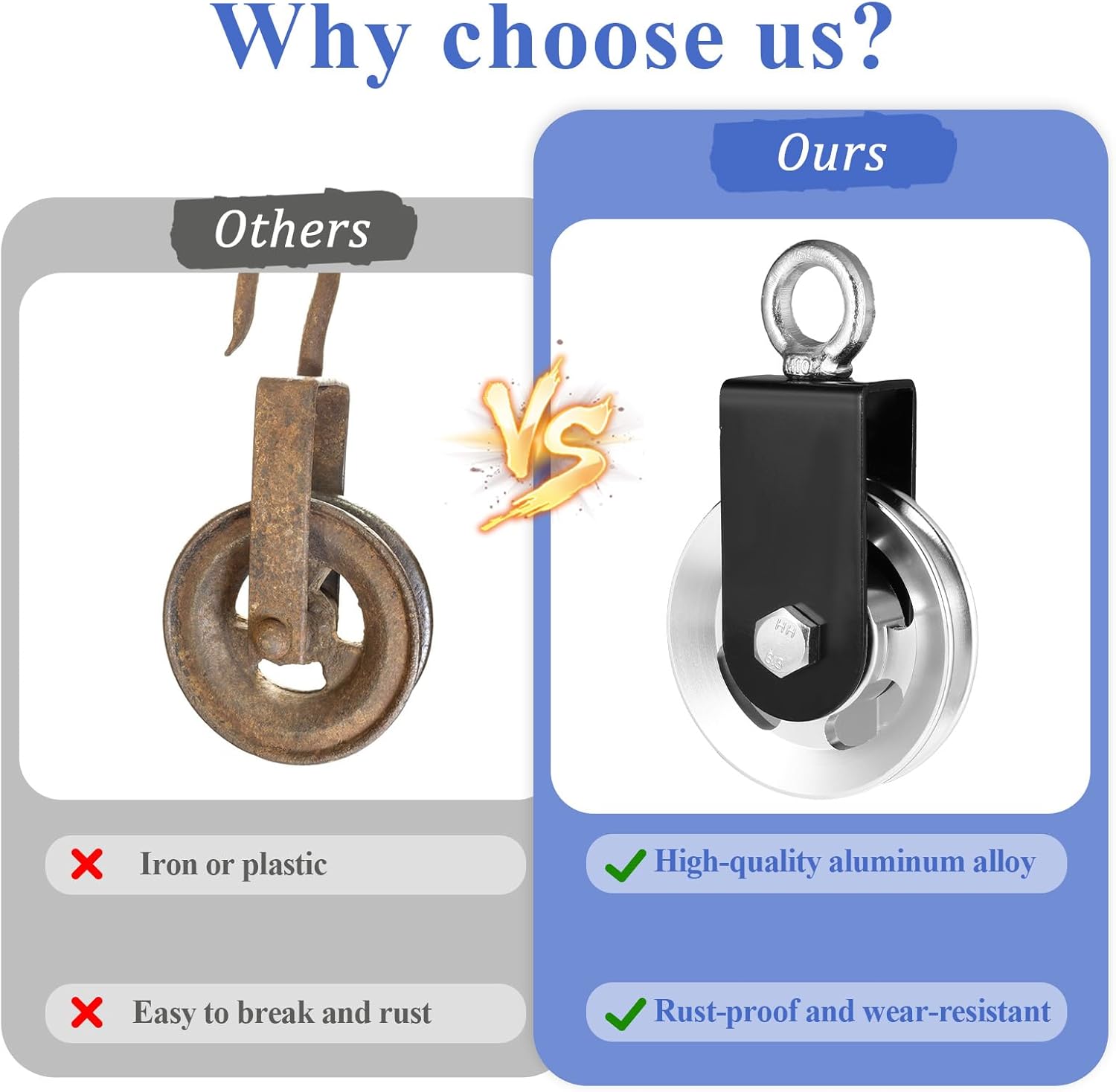 Premium Aluminum Alloy Building: Made with high-grade aluminum alloy wheel and chrome steel bearings, this silent rotation 360-degree pulley affords distinctive sturdiness. The rust-proof, wear-resistant U-shaped bracket maintains structural integrity beneath heavy hundreds as much as 440lbs/200kg with out deformation.