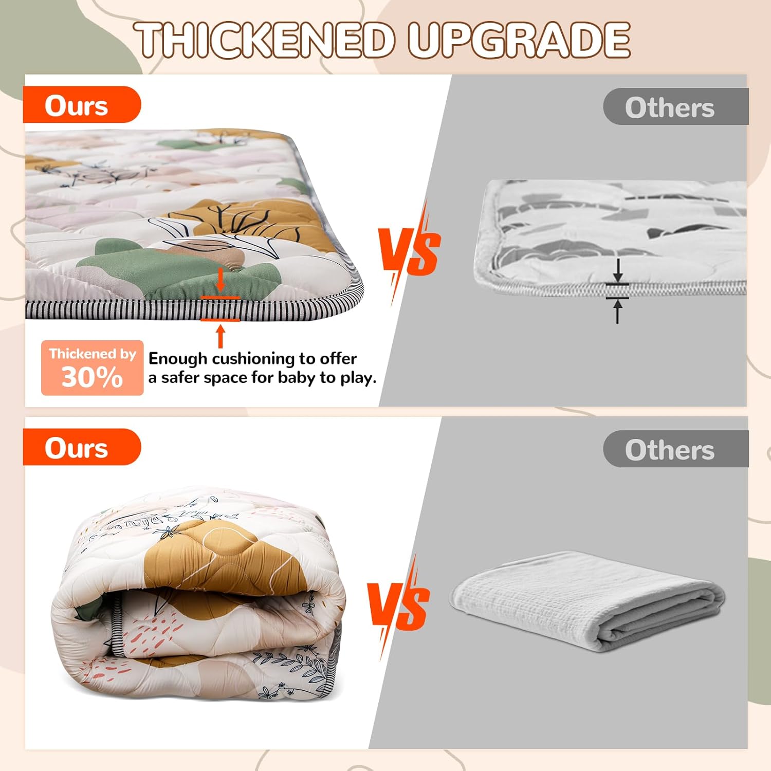 【Transportable & Machine Washable】 This child ground play mat is a one-piece, foldable design, making it excellent for on-the-go playtime. It is handy to pack for journey or storage, saving you area. And in the case of cleansing, you’ll be able to depend on the washer to take away stains, making your life a lot simpler.