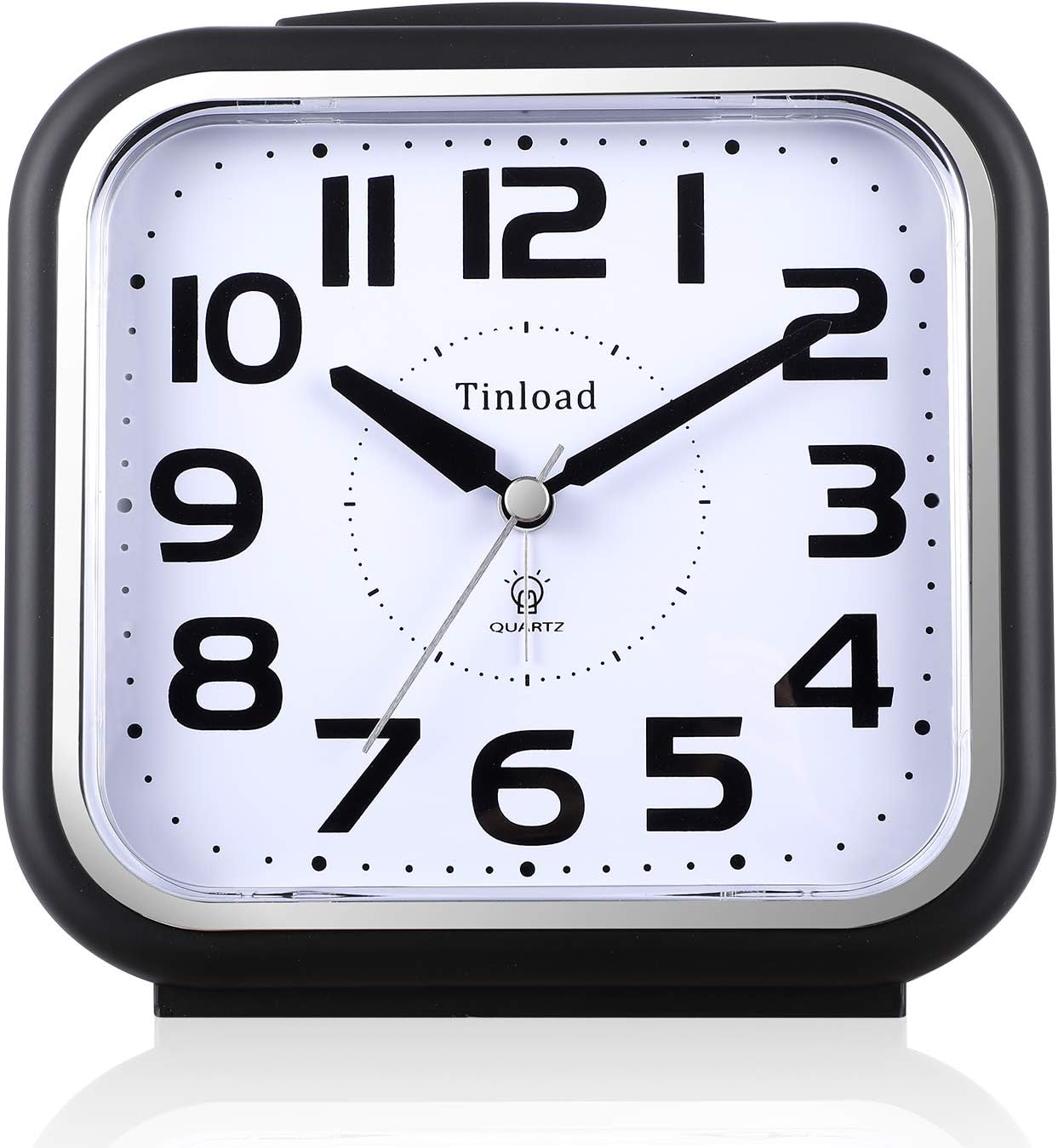 Giant Measurement– Measurement: 5.5″ x 5.5″ x 2.2″. Alarm clock stands up at an angle, top quality plastic, sq. face with white dial, black Arabic numerals, good ornament for tabletop, desk & shelf, bedrooms. Additionally giant dimension display and clear daring digits to show time, good alarm clock for aged.
