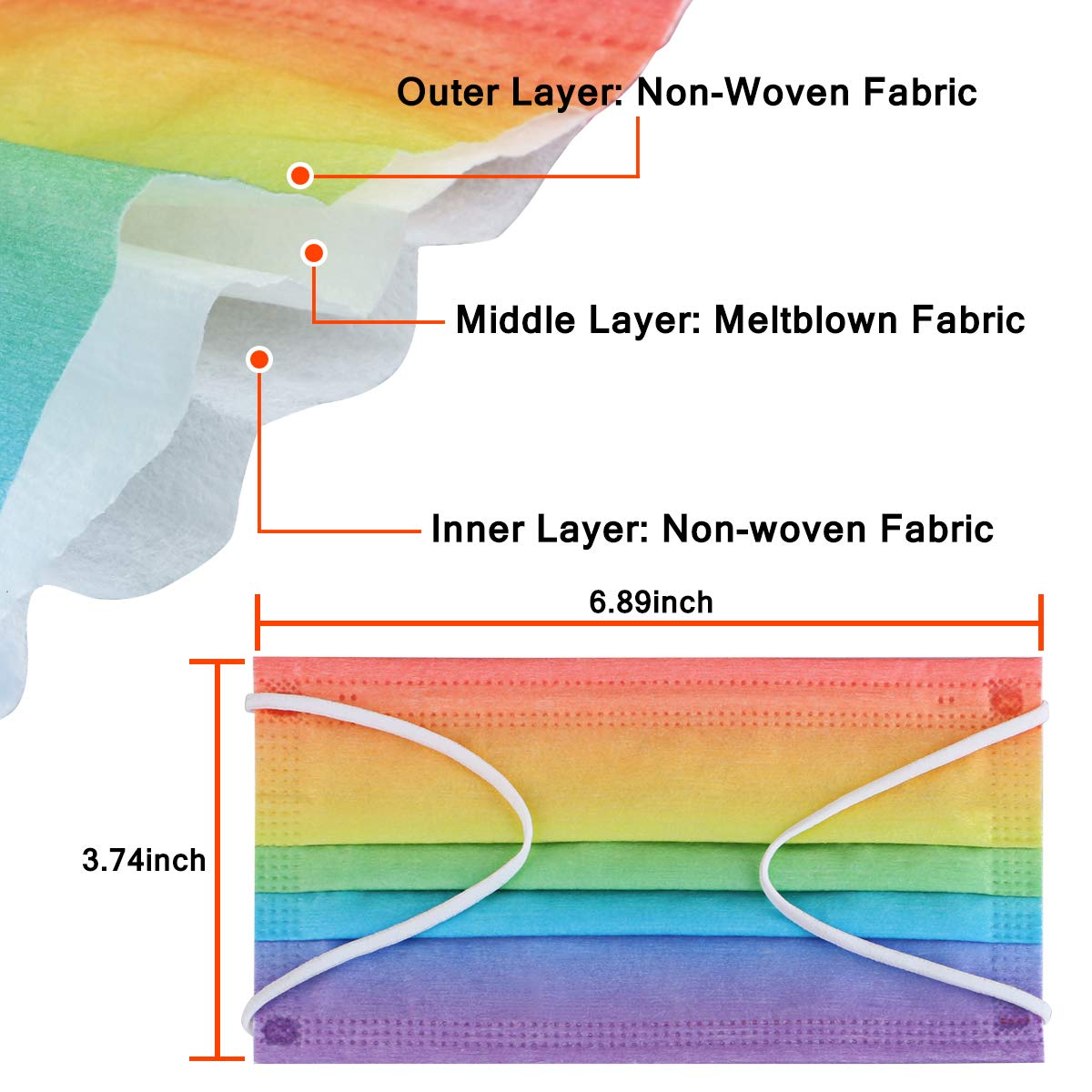 Rainbow Printed Disposable Face Maks: 50Pcs in a single field, nicely packaged