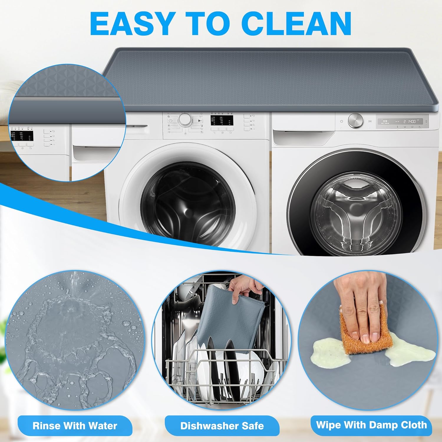 【Non-Slip and Waterproof Floor】- With distinctive non-slip design, the washer dryer countertop stays firmly in place on the equipment. Moreover, the mat is each waterproof and heat-resistant, successfully stopping liquids from getting into the machine.