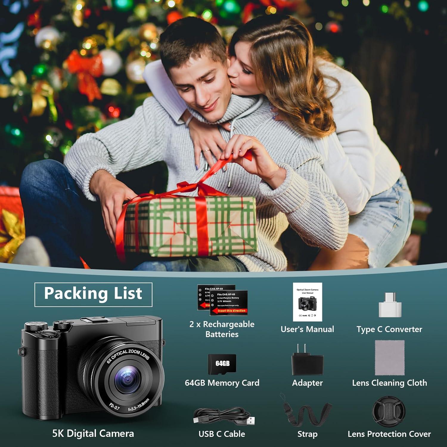 【Good Present】Designed particularly for journey and day by day use, the compact digital cameras for images solely 4.9 x 2.7 x 2.9 inches, which may be simply put into your bag. You’ll get 1*5k Digital Digicam, 2*Lithium Battery, 1*64GB TF Card, 1*Lens Safety Cowl, 1*USB Cable, 1*Charger, 1* Digicam Bag, 1*Lens Cleansing Fabric, 1*Consumer Handbook, and 1*Digicam Strap. We offer 24/7 worry-free service to make sure you don’t have any worries. Greatest cameras for content material creators & newbie