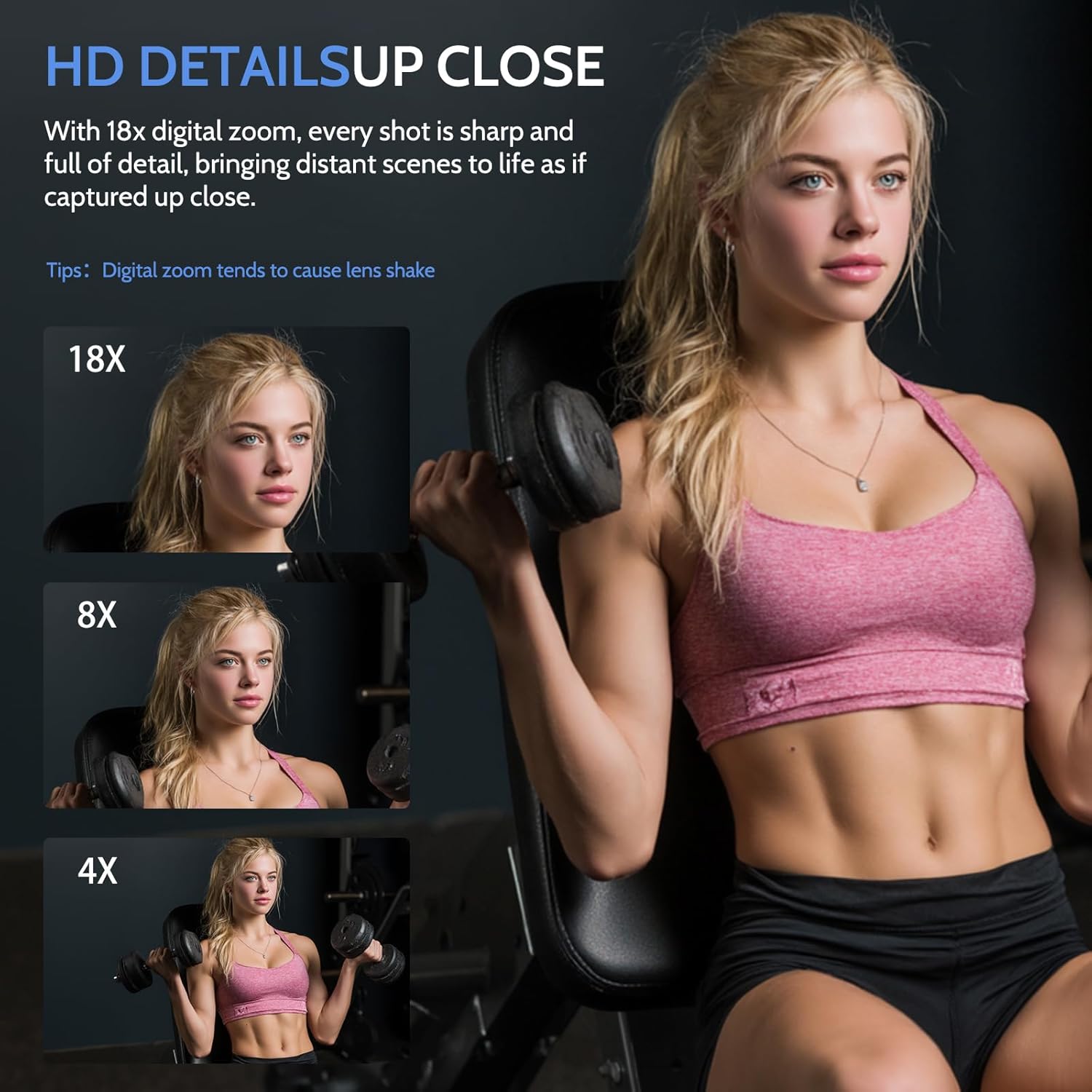 【Highly effective Zoom & Precision Focus for Each Shot】This digital digital camera is provided with 18X digital zoom and three focus modes—auto, handbook, and glued—this digital camera offers inexperienced persons extra management over their photographs, whether or not capturing landscapes or close-up particulars.