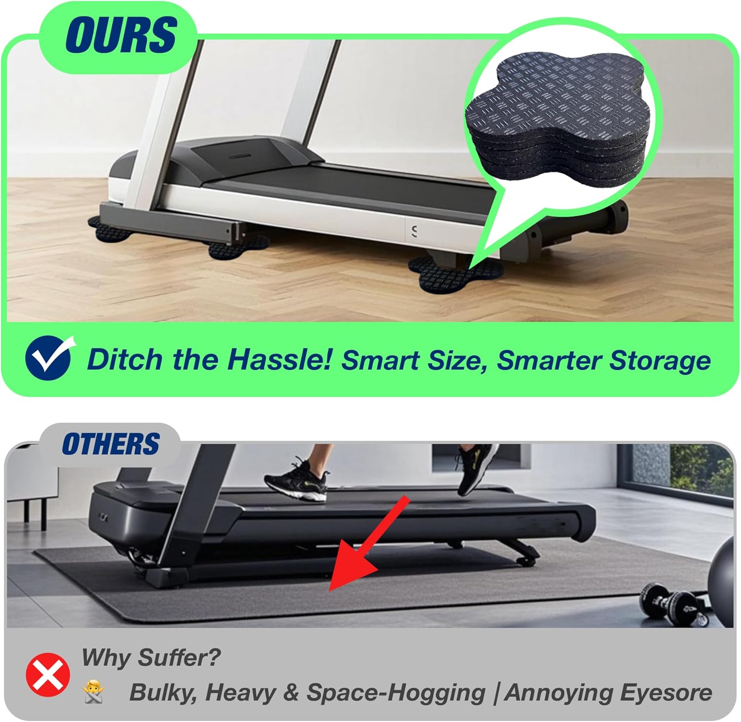 ✨ 【UPGRADED DOUBLE-SIDED NON-SLIP FOR ROCK-SOLID STABILITY】 Say goodbye to single-sided limitations! Our distinctive dual-sided non-slip texture gives unparalleled stability and grip. Whether or not it’s an intense exercise or regular cardio, these pads securely anchor your treadmill or different train gear, successfully stopping shifting and sliding whereas meticulously defending your priceless flooring from scratches and scuffs.