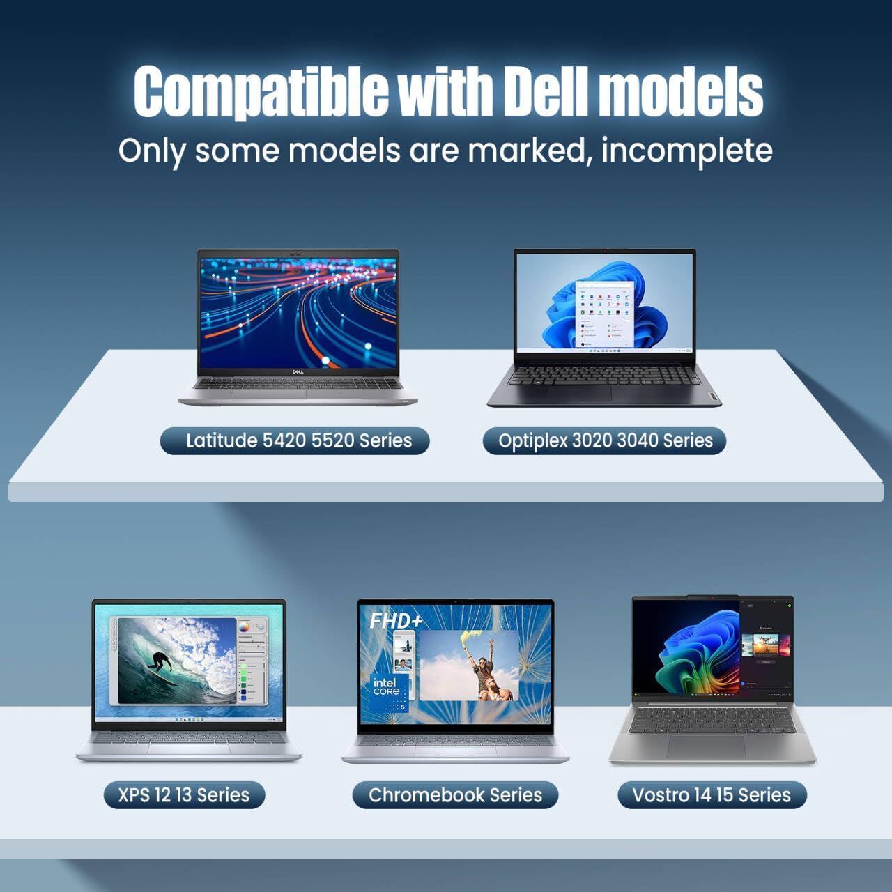 Match for XPS 12 13 15 XPS 12 12D: L221x Ultrabook 9Q23 9Q33 XPS 13: 321X 322X L321X L322X 3943 9333 9343 9370 9360 9350 9365 9380 XPS 15 9550 XPS 7390 9300 11 13 14 Match for Latitude 11- 17 Sequence Latitude 11 5175 5179 T04E001 2-in-1 Latitude 12 5285 5289 5290 7212 7202 7275 7285 7290 T17G002 T02H001 T02J001 P29S002 2-in-1;Latitude 13 3380 3390 3379 7350 7368 7370 7389 7390 2-in-1 E737;Latitude 14 5490 7490 E7480 E5450;Latitude 15 5500 5590 7569 2-in-1;Latitude 17 7778 2-in-1 Match for Latitude 3000 collection Latitude 3000 collection 3120 3410 3300 3520 3320 3390 2-in-1 3310 3310 2-in-1 3550 3420 3301 3380 3500 3400 3510 3379 2-in-1 Match for Latitude 5000 Sequence Latitude 5000 Sequence 5520 5490 5510 5290 5400 5420 5300 5410 5500 5590 5580 5310 5488 5480 5285 2-in-1 5179 2-in-1 5320 2-in-1 5310 2-in-1 5290 2-in-1 5300 2-in-1 5285 2-in-1 Match for Latitude 7000 Sequence Latitude 7200 7212 7275 7285 7290 7300 7310 7320 7370 7390 7400 7480 7410 7420 7490 7520 7420 2-in-1 7410 2-in-1 7400 2-in-1 7390 2-in-1 7389 2-in-1 7285 2-in-1 7210 2-in-1 7200 2-in-1 Match for Latitude 9000 Sequence Latitude 9000 collection 9410 9420 9510 7410 5400 9520 2-in-1. Appropriate with Dell Vostro 14 5410 5590 Match for Chromebook Sequence 3500 3400 3100 3300 3380 5190 7486 5300 5400 5500 7200 7300 7400 5190 2-in-1 P28T P29T P110G P111G P86F P99G P100G 3380 5190 7486 Appropriate with Vostro 14 3458 3459 54;15 3358 3558 3559 Appropriate with Optiplex 3020 3040 7040 9020 3046 Appropriate with VENUE VENUE 10 PRO 5056 VENUE 8 PRO 5855 Appropriate P/N: DA65NM190 DA45NM170 HA45NM170 LA45NM171 DA45NM180 LA65NM190 LA45NM150 AA45NM150 HA45NM180 HA30NM150 P28T P29T P86F P148G P149G 450-AEVT 470-ABSF 492-BBSP 492-BBUU 492-BBWZ 492-BBZP HDCY5 02CR08 9FNYW 24YNH 5FX88 2VP8G 0HDCY5 0R2MBK 0WC42G 04RYWW 0JNKWD 2YK0F JYJNW 0JYJNW 0JYNW JNKWD 02YK0F M1WCF 0M1WCF 8XTW5 08XTW5 D0KFY JT9DM PW7015MC Y91PF F17M7 HDCY5 689C4 02dl125