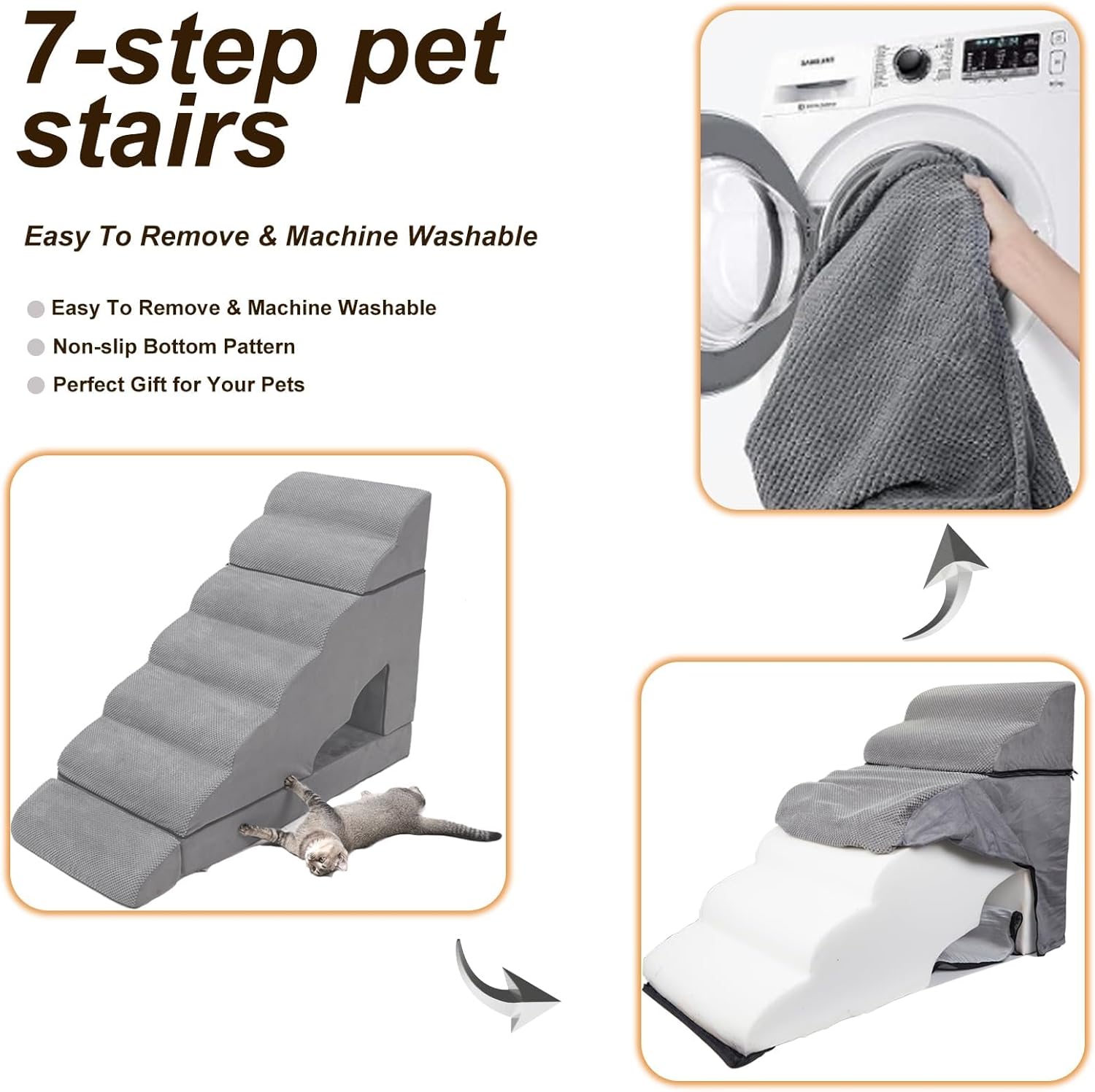 7-Tier Canine Stairs: A.FATI 7-tier canine stairs include 4 step pet stairs, 2 step canine stairs and one giant canine mattress, permitting you to disassemble and assemble them in keeping with your wants. When they’re mixed, you’ll have a 34 inch excessive canine stairs, which is ideal for beds which are 32-36 inches excessive