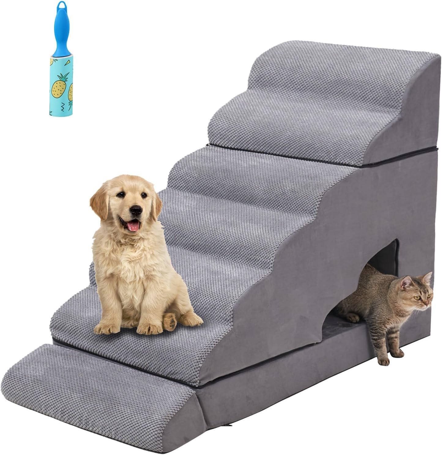 3-in-1 Pet Stairs & Canine BedGentle Slope Design, Relieve strain on the canine’s legsAnti-slip on the Backside and 10PCS Further VelcroRemovable cowl, Handy to cleanThere is a gap on the backside, which can be utilized for cats to play or for storing canine toys