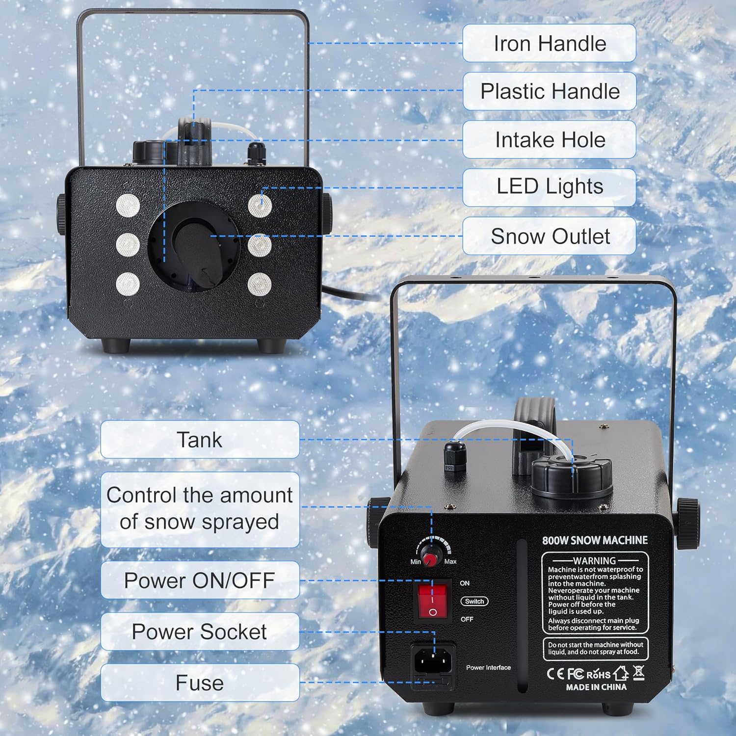 【Highly effective 800W Snow Maker Machine with Skilled Output】 Expertise spectacular snow manufacturing with our 800W high-performance snow maker machine! This sturdy pretend snow machine generates ample snowfall and initiatives it over spectacular distances, making it excellent as snow machines for outdoor in massive areas whereas equally efficient as a snow machine indoor for varied settings and occasions.