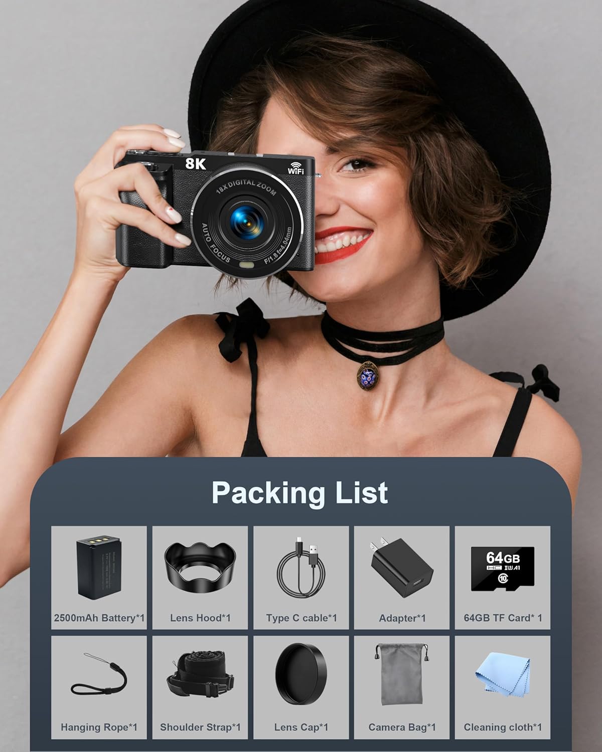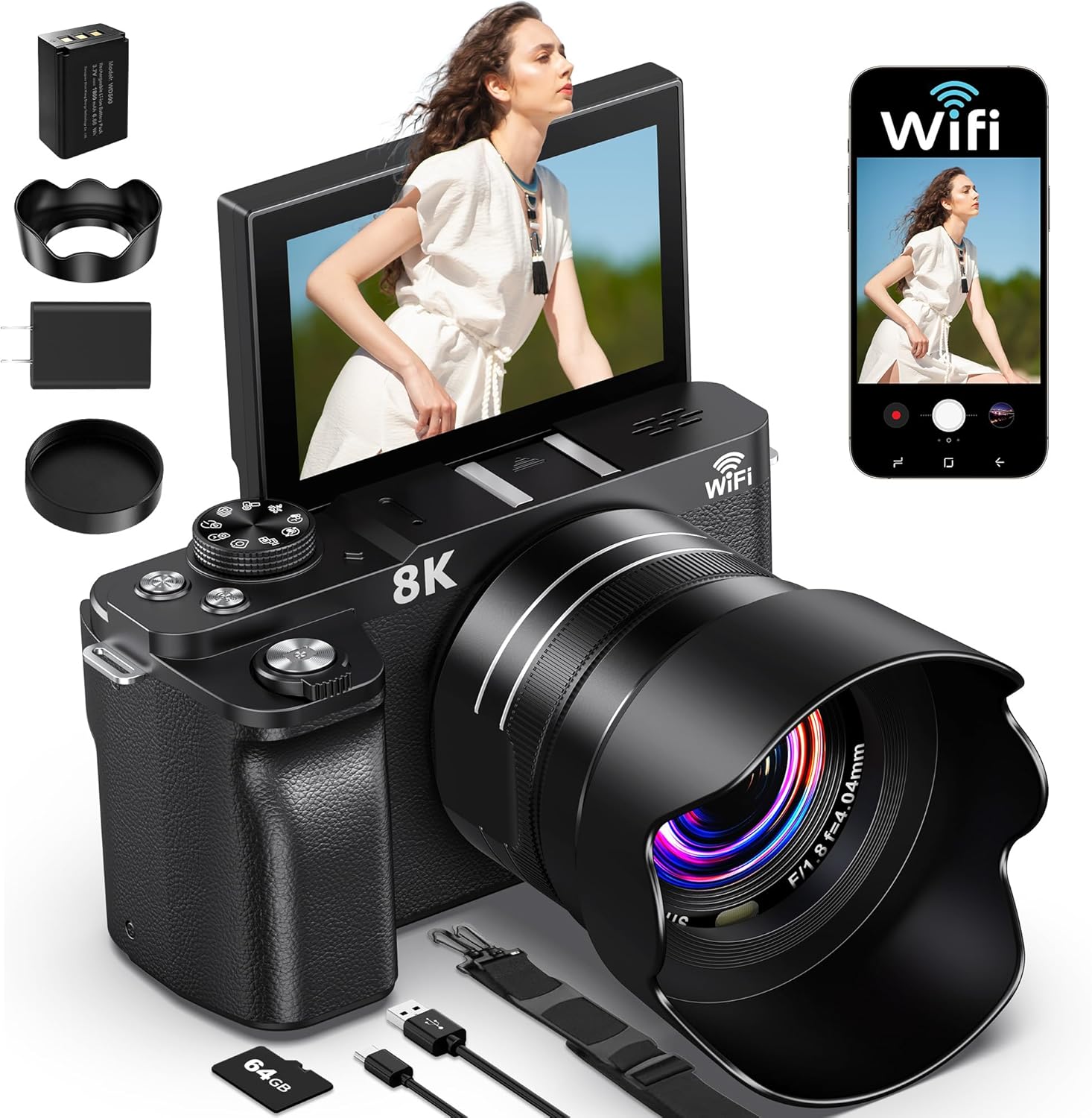 【Rechargeable Battery & 64GB Storage】Geared up with a high-capacity rechargeable battery, this vlog digicam retains you filming throughout lengthy journeys or prolonged outings with out interruption. The included 64GB high-speed SD card gives loads of area for storing massive quantities of pictures and movies, so you possibly can seize each second with out worrying about working out of storage