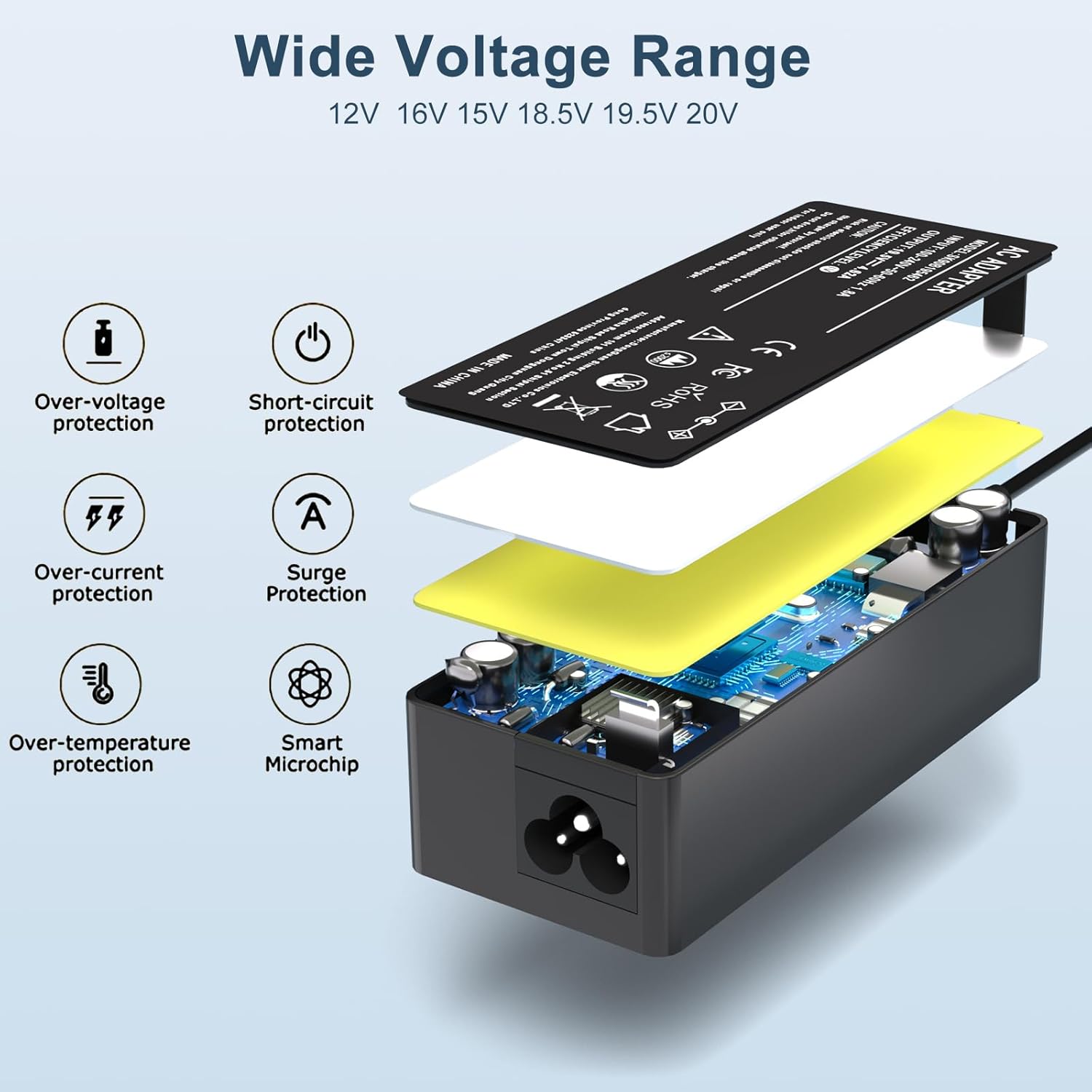✔【common Laptop computer Charger 90 Watt】Enter:100-240V 50~60Hz worldwide.Output:15V 16V 19V 19.5V 20V,4.5A 90W,65W,45W; This common laptop computer charger is absolutely suitable with 90w 65w 45w laptop computer chargers and adapters. (Appropriate with units beneath 90W)
