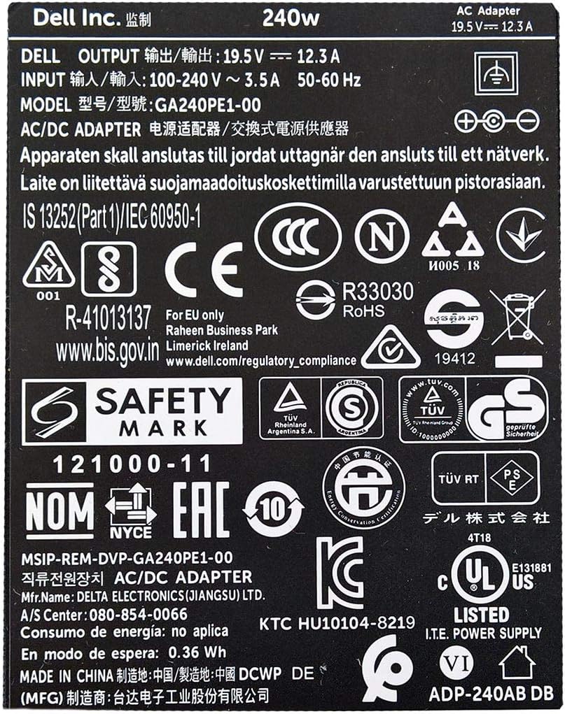 – output: 240 Watt – 12,3A / 19,5V – enter : 100-240V / 50-60 Hz- incl. energy wire For record of obtainable energy cords click on right here