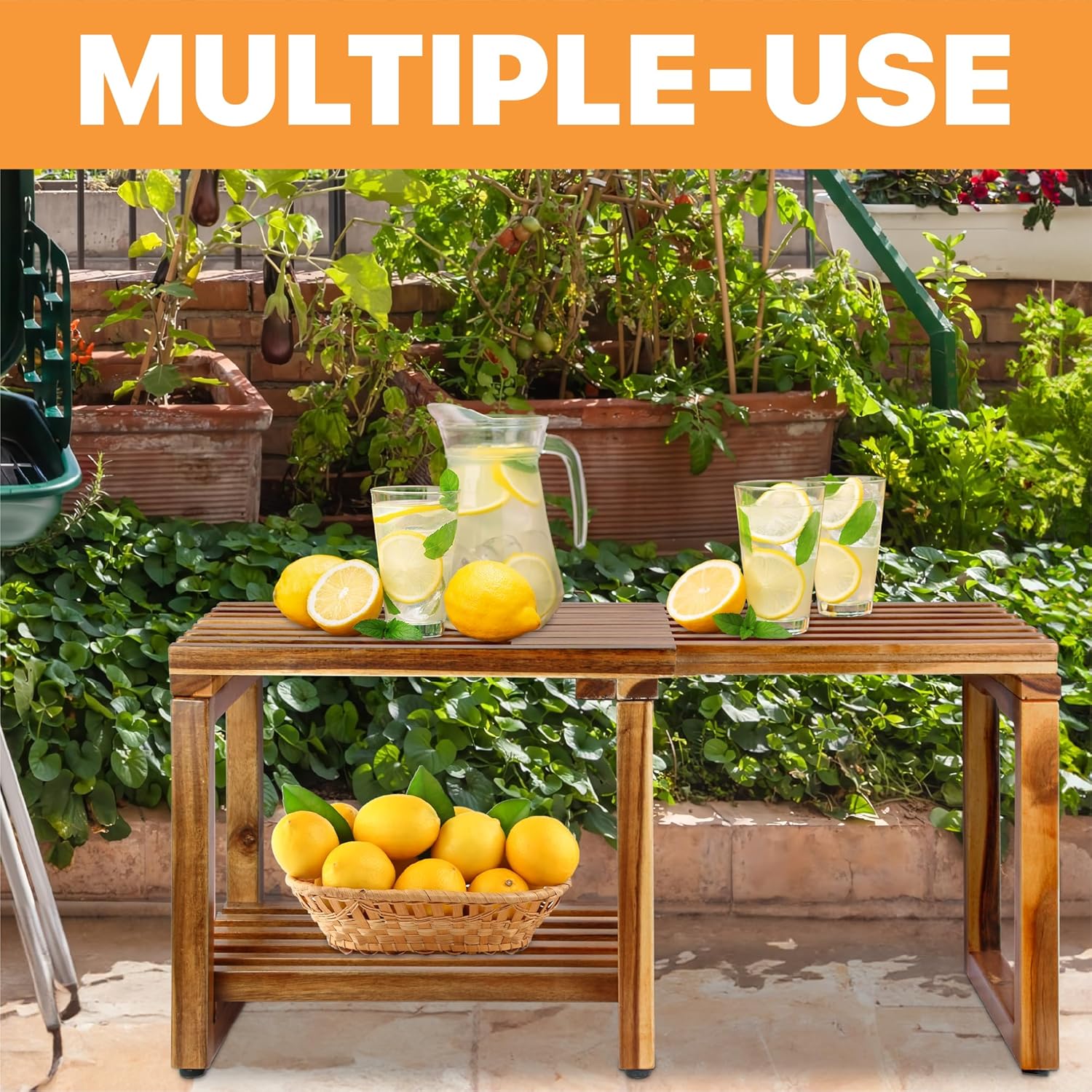 VERSATILE AND MULTI-USE: Our bathe bench with a Constructed-In Shelf is equally efficient whether or not utilized in your toilet as a bathe bench or positioned outside by the swimming pool or on the patio, functioning as a flexible aspect desk or espresso desk. It provides a sustained feeling of safety and magnificence to reinforce your bathing expertise