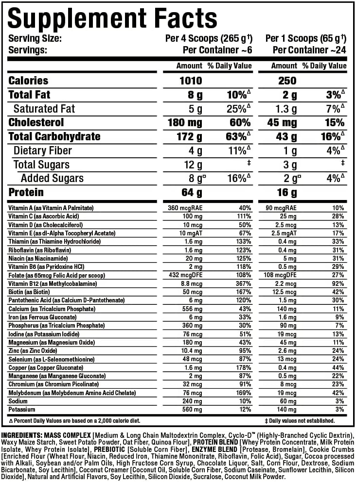 RAPID MASS BUILDING FORMULA: Delivers 1010 energy and 64 grams of sustained-release protein per serving, scientifically engineered to assist shortly improve lean muscle mass.