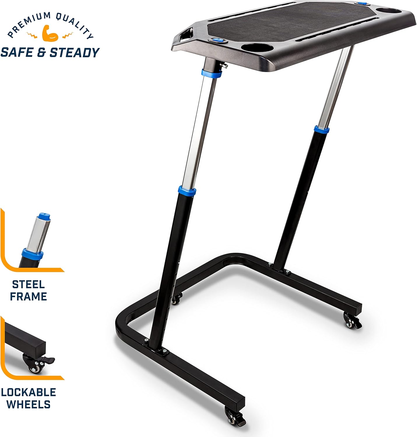 LOCKABLE WHEELS FOR MOVABILITY – For portability, ease of utilization, and ground preservation, Alpcour Bike Coaching Health Desk was manufactured to be light-weight and outfitted with lockable wheels. With this, it’s simpler to maneuver round or repair its place. The tires additionally be sure that transferring the tools won’t trigger any harm to the ground.