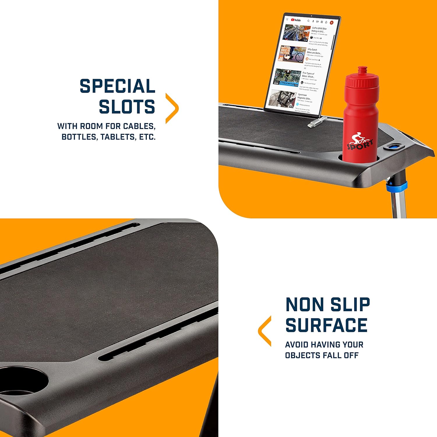 ESSENTIAL DESIGN – Alpcour Bike Coaching Health Desk was fastidiously designed to offer the very best service that may be provided. It was designed with built-in pill and cellphone slots, a non-slip floor to accommodate your necessary gadgets akin to devices whereas avoiding incidents of falling. Lastly it has holes which is a specifically positioned inlet for cables and chords of chargers and different equipment.