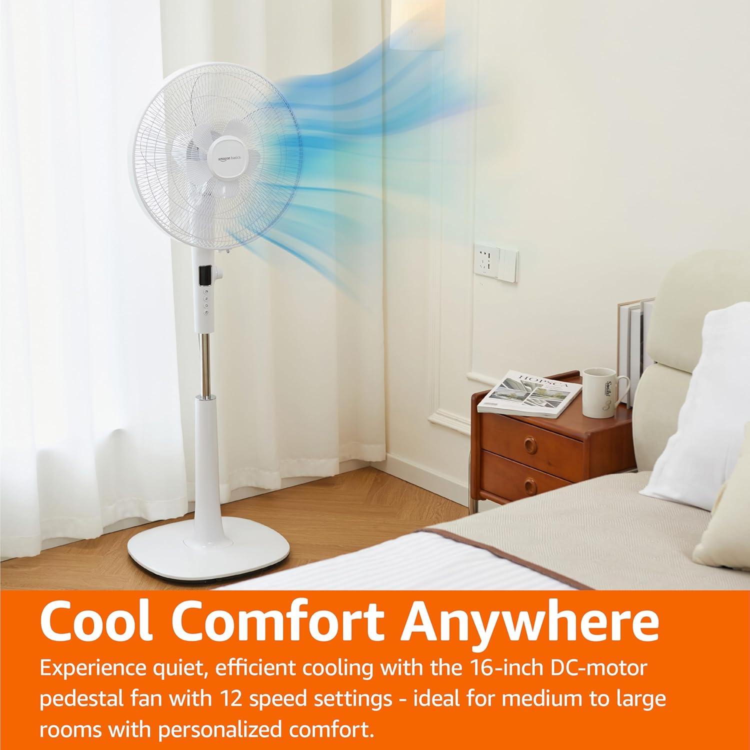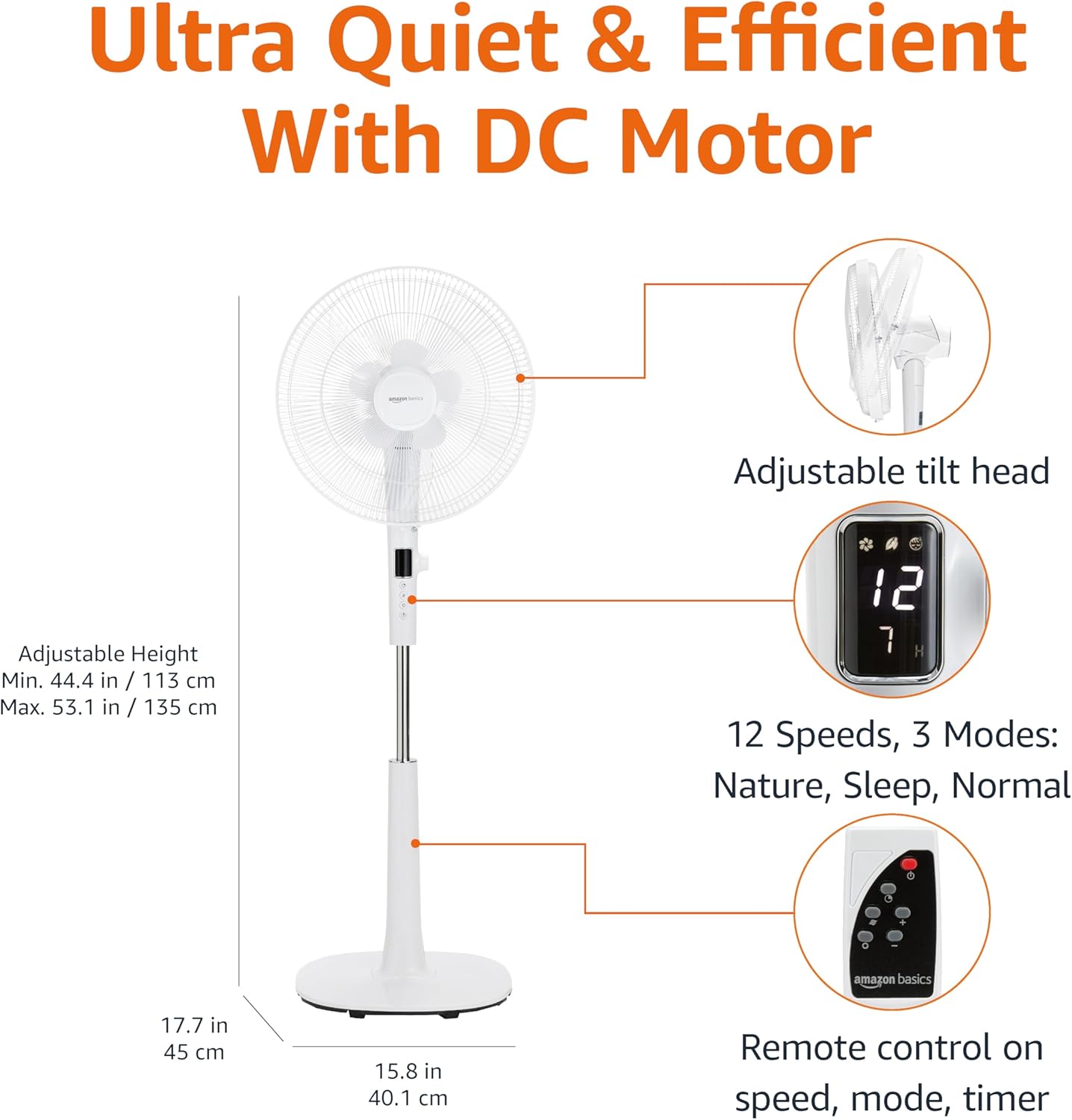 Amazon Fundamentals 16″ DC Motor Standing Flooring Fan, 12 Pace with Distant, 3…