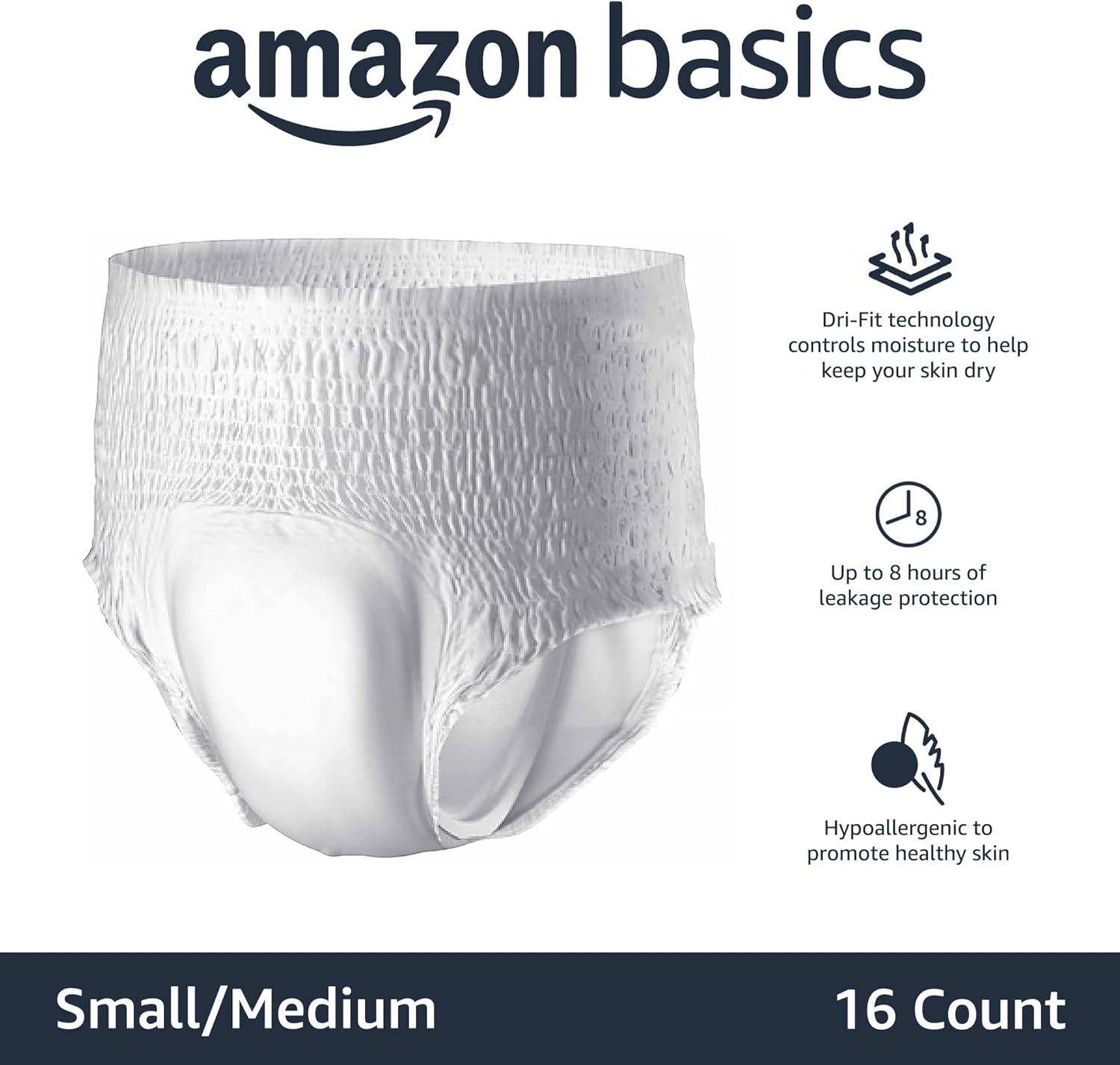 Incontinence underwear for women and men in Small/Medium (16-count) for in a single day absorbency