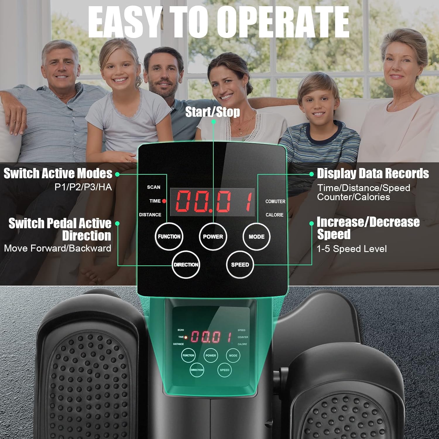★【A number of Motion Perform】Relying in your wants and talents, below desk elliptical coach has Auto (P1-P3) & Guide (5-levels pace) on your alternative. Pedals can ahead or backward to focus on totally different muscle tissue. Observe: solely use it whereas sitting.