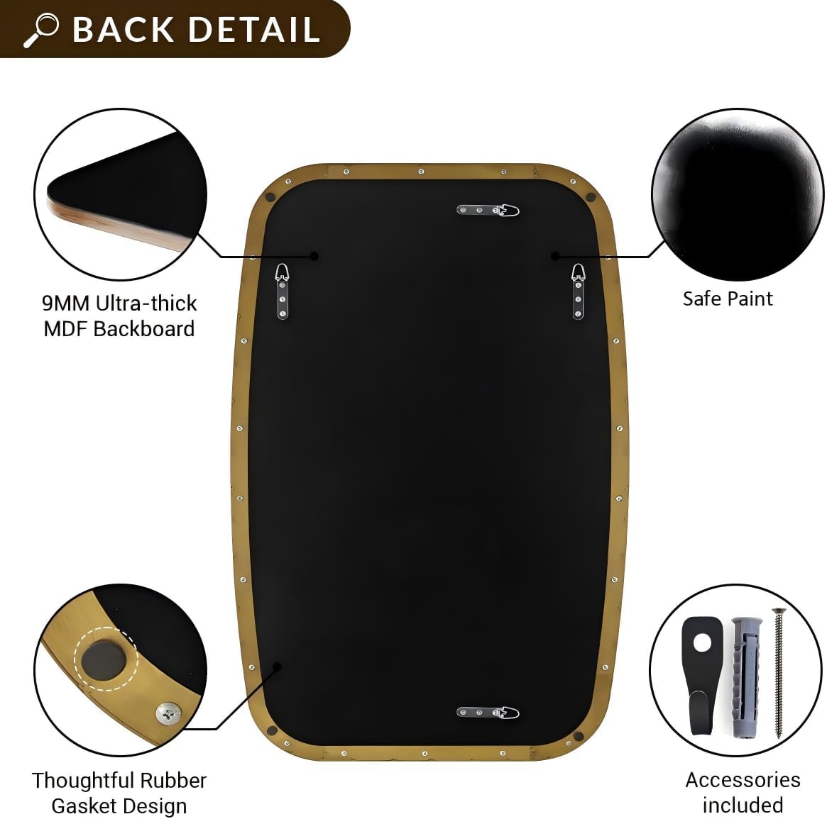 Premium High quality: Crafted from heavy-duty SUS304 stainless-steel, this oval mirror is sturdy, sturdy, anti-scratch, and rustproof; The no-distortion HD glass supplies clear reflections; the MDF backboard ensures security and power towards humidity