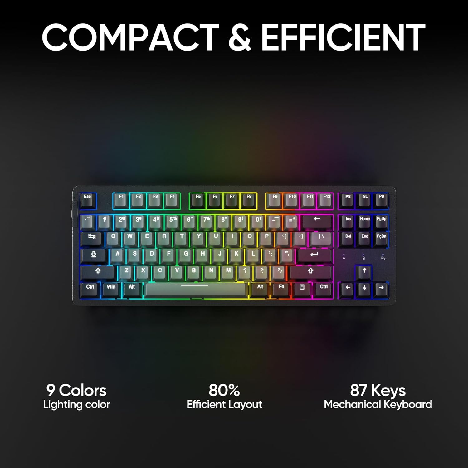Beautiful RGB Impact:The ARZOPA K87 Mechanical Keyboard options RGB Backlit and PBT Double Shot Keycaps. Immerse your self in gorgeous RGB lighting results and improve gaming environment. The keycaps are sturdy, steady, and will not fade