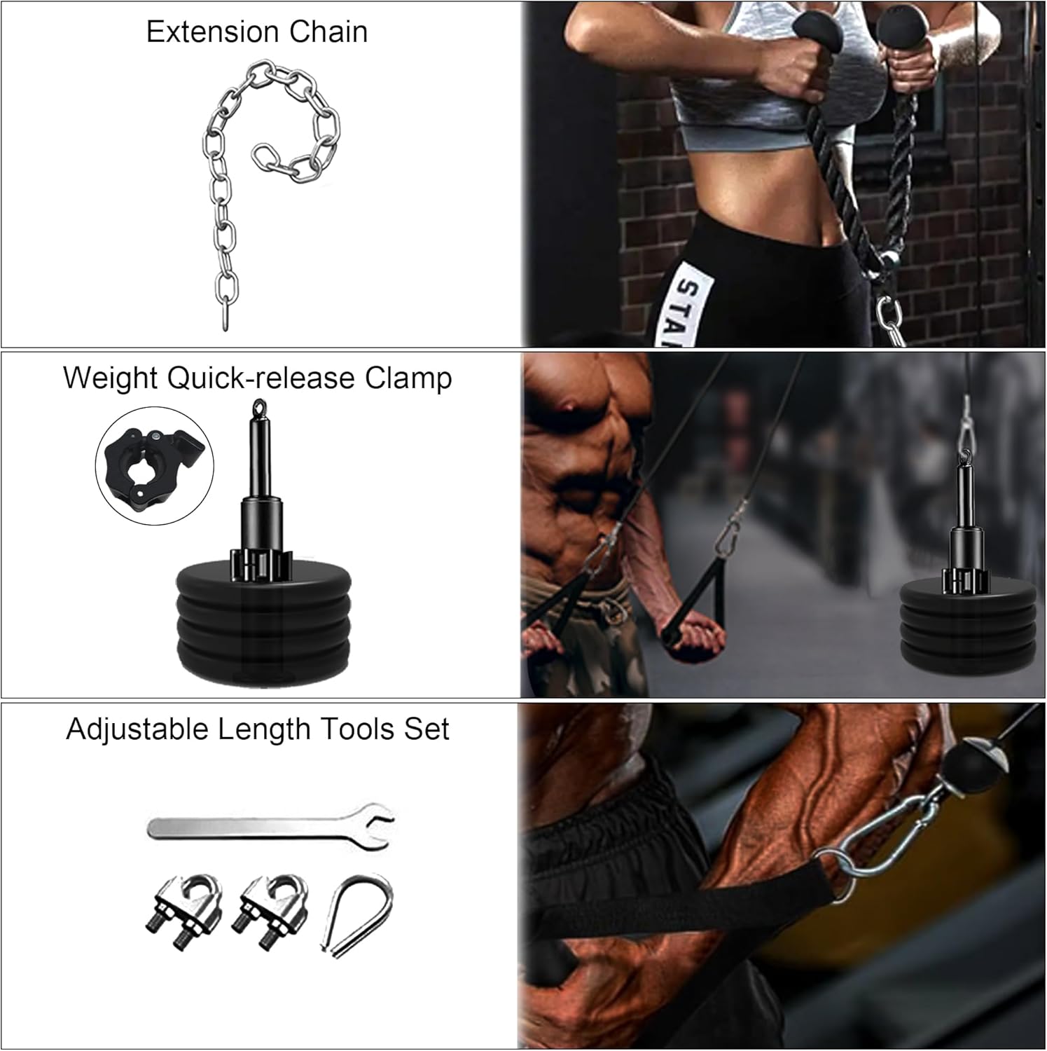 Upgraded Twin Pulley System: The cable attachments for the fitness center have 2 pulleys and extra cable machine equipment than different fitness center pulley system kits. You are able to do numerous workouts in a whole and balanced means, resembling biceps curls, triceps pulldowns, lat pulldowns, rowing, flyes, and so forth