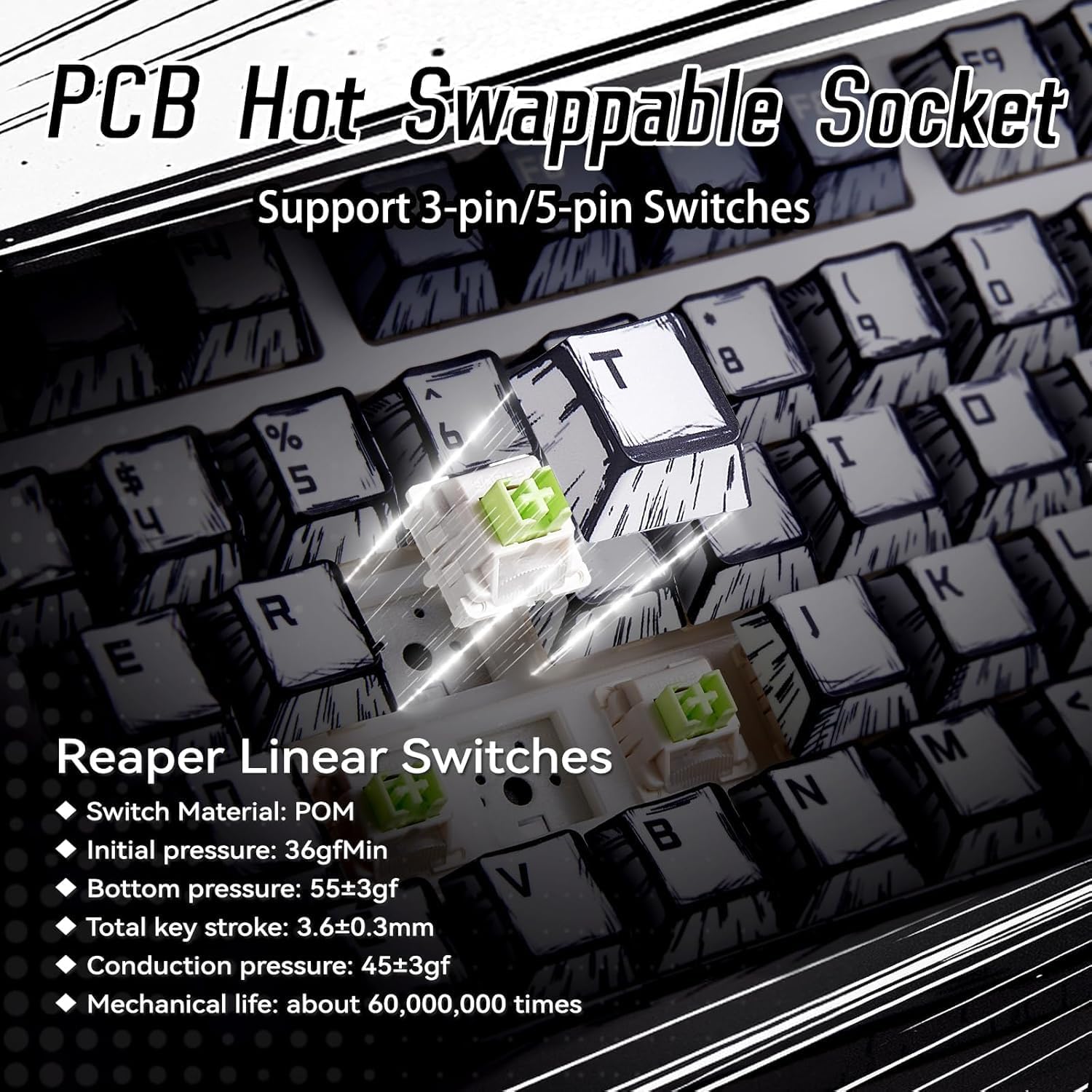 AULA F75 Gaming Keyboard with Knob and Creamy Sounding Manga Keycaps