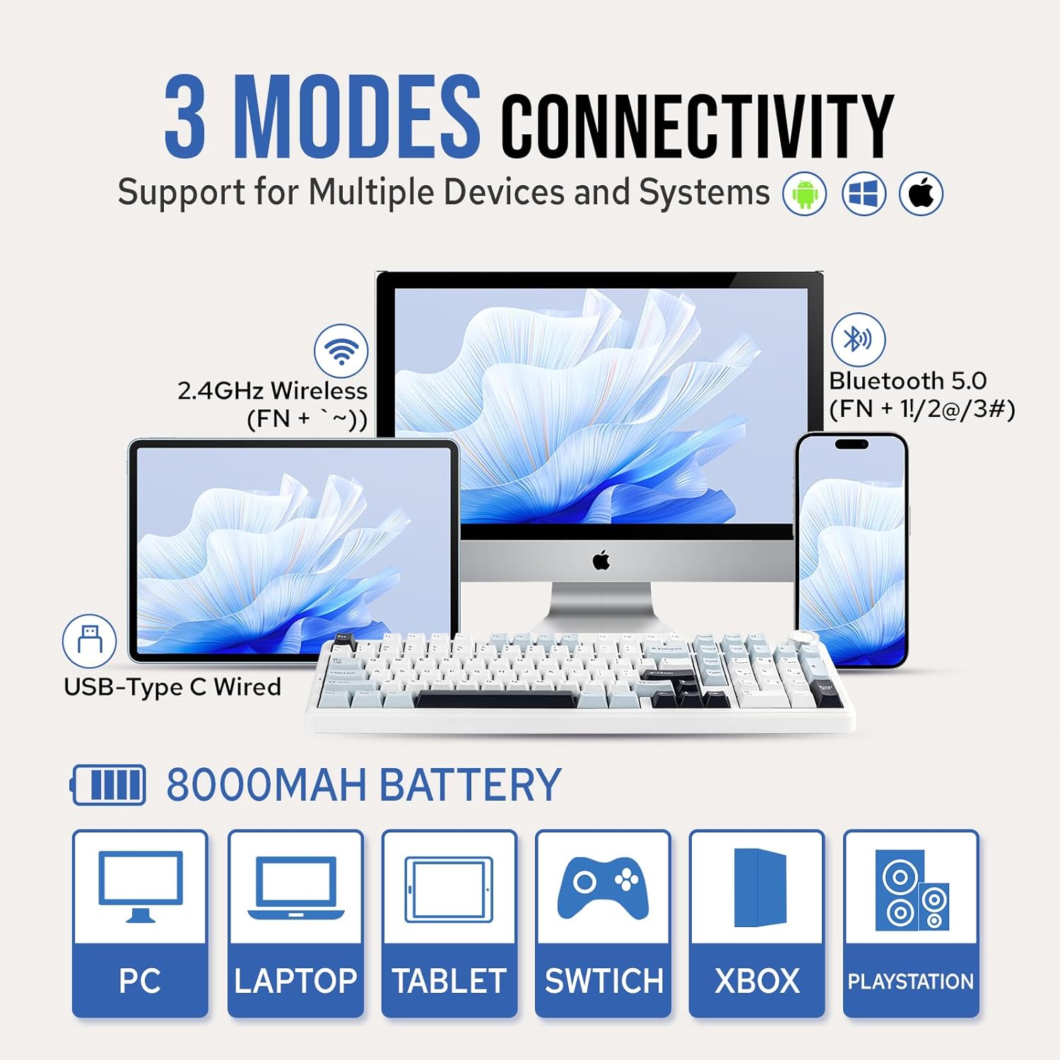 Sure, this keyboard helps Bluetooth/2.4GHz/USB wired connections and is suitable with a number of methods together with Home windows, Mac, iOS, Android, and so on.