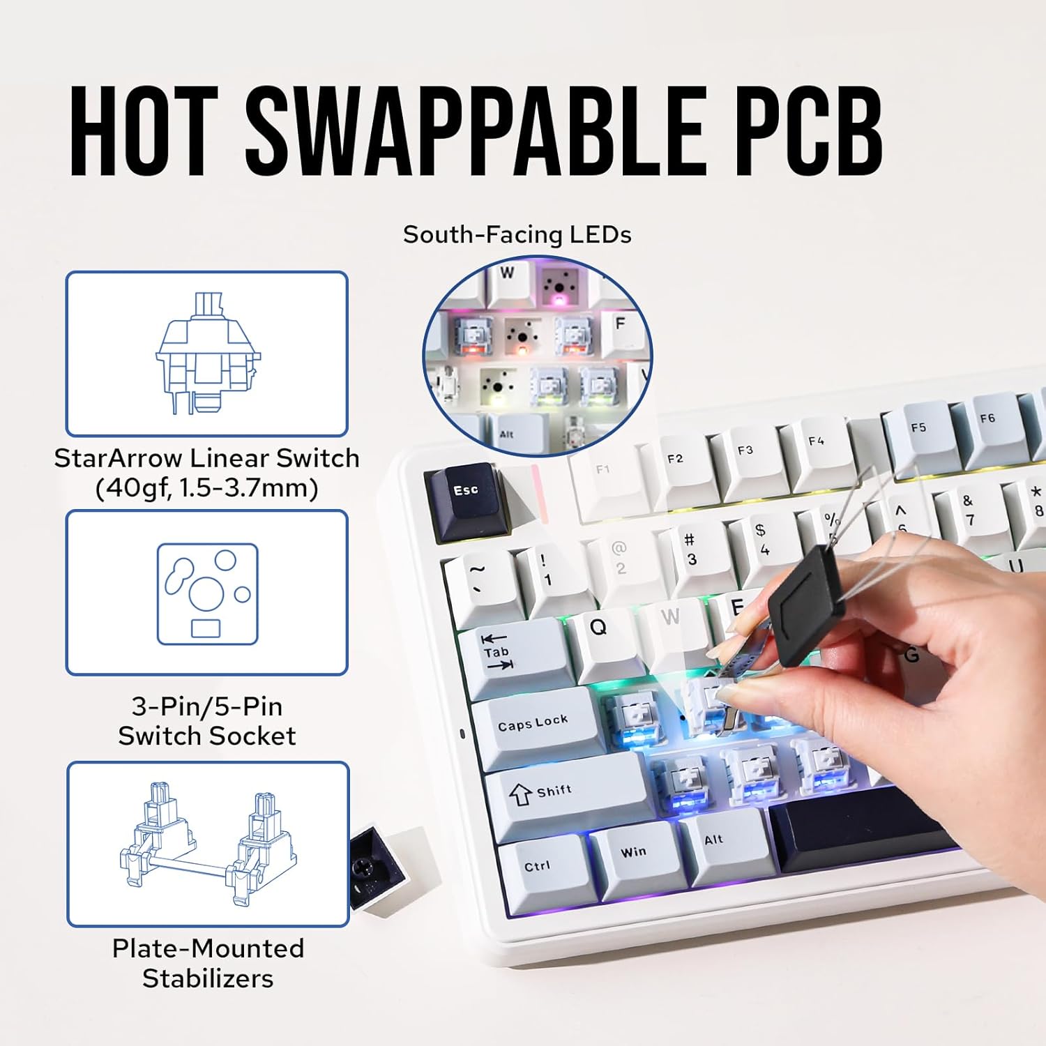 【Flex-Minimize 1.2mm Sizzling Swappable PCB and PC Plate】 The F99 PRO encompasses a single-slot flex-cut PCB and PC plate, designed to keep away from undesirable noise and ship a softer typing really feel. The PC plate is extra versatile than aluminum or stainless-steel, contributing to a deeper and extra satisfying sound. The hotswappable PCB permits for straightforward change replacements with out soldering, enabling customers to customise their typing expertise with their favourite switches.