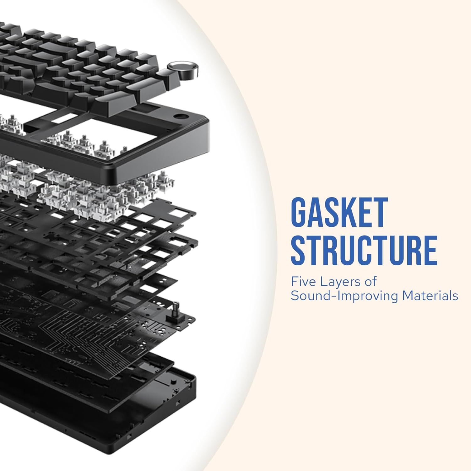F99 PRO mechanical keyboard makes use of 5 layers of sound-dampening inner construction, incorporating sandwich foam, IXPE change pad, PET sound-improving movie, backside foam, and silicone case pad, making a pure typing sound and delivering a targeted typing surroundings.