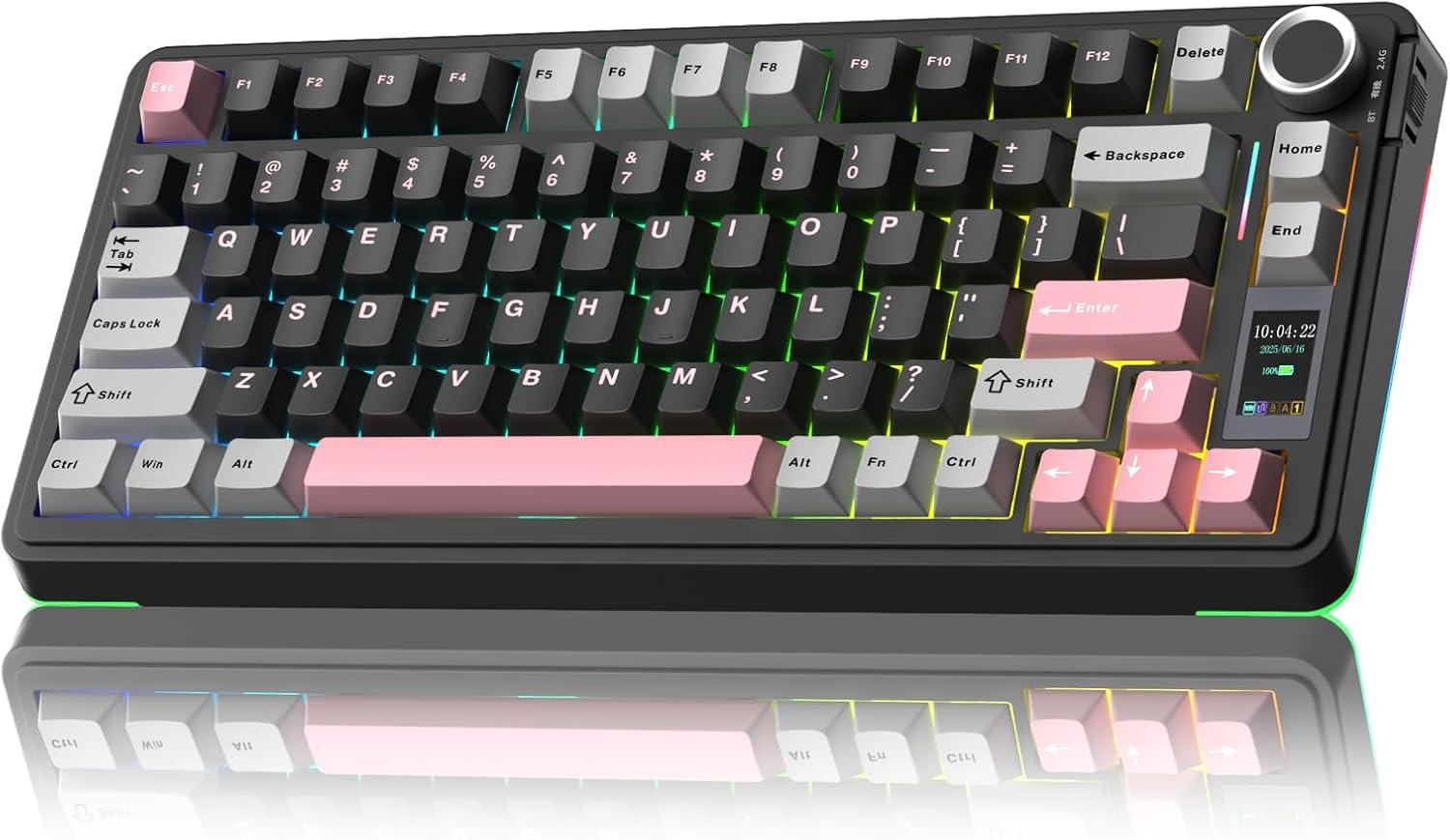Wireless Mechanical Keyboard with Screen&Knob Hot Swappable Gaming Keyboard mechanical keyboard with Programmable Software