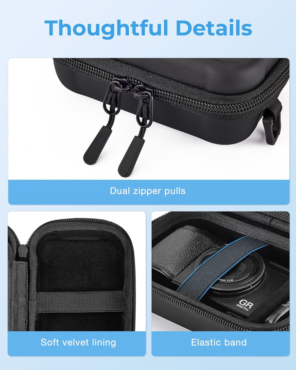 Glorious safety – Digital digital camera circumstances function EVA housing for glorious waterproof, shockproof, dustproof, and anti-slip capabilities. This superior protecting cowl safeguards your invaluable cameras from affect, scratches, and different potential damages, permitting you to confidently discover numerous environments. The gentle lining ensures safe and cozy storage circumstances in your units