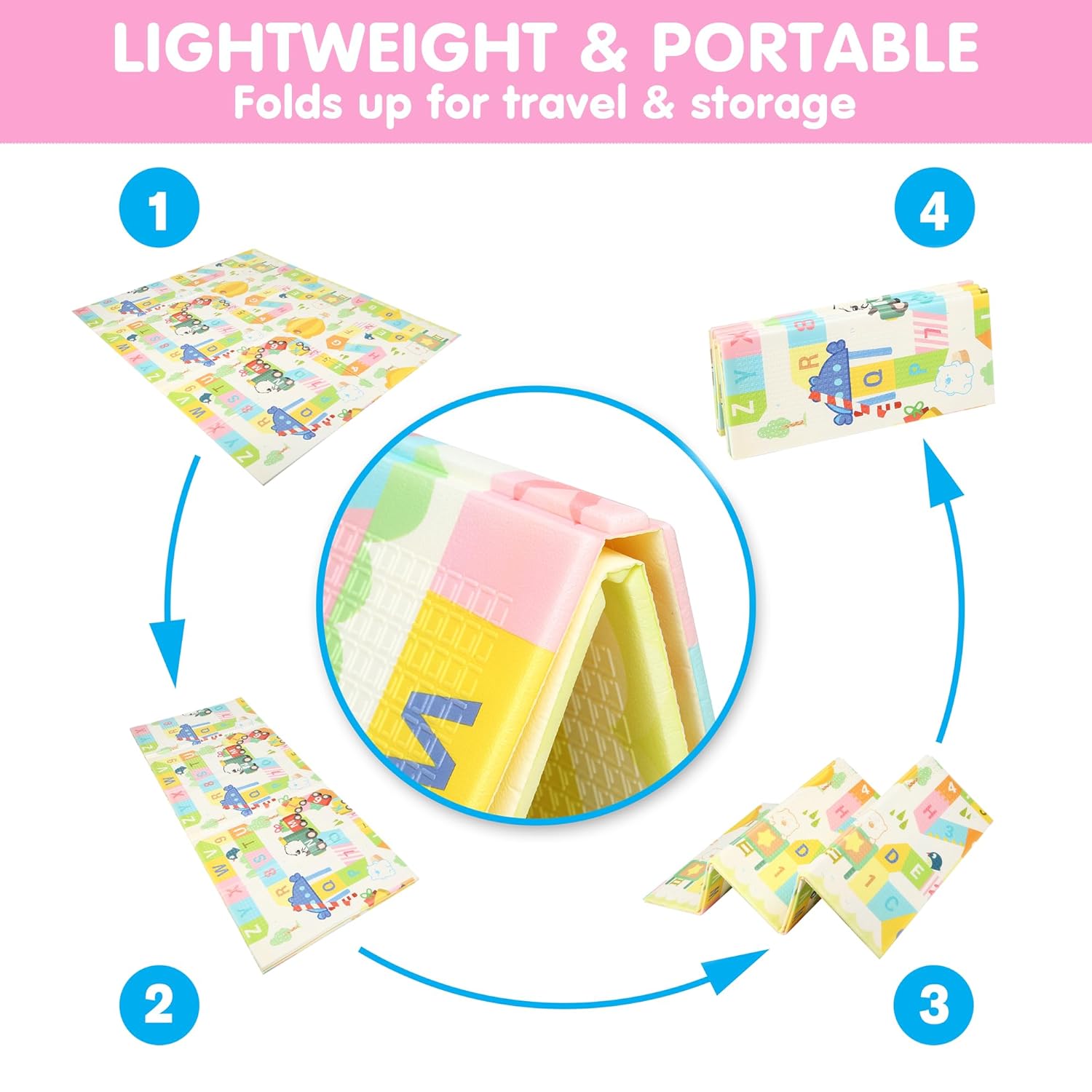 🎒LIGHTWEIGHT & PORTABLE: This foam play mat for child is light-weight & folds down simply and compactly for storage or journey!