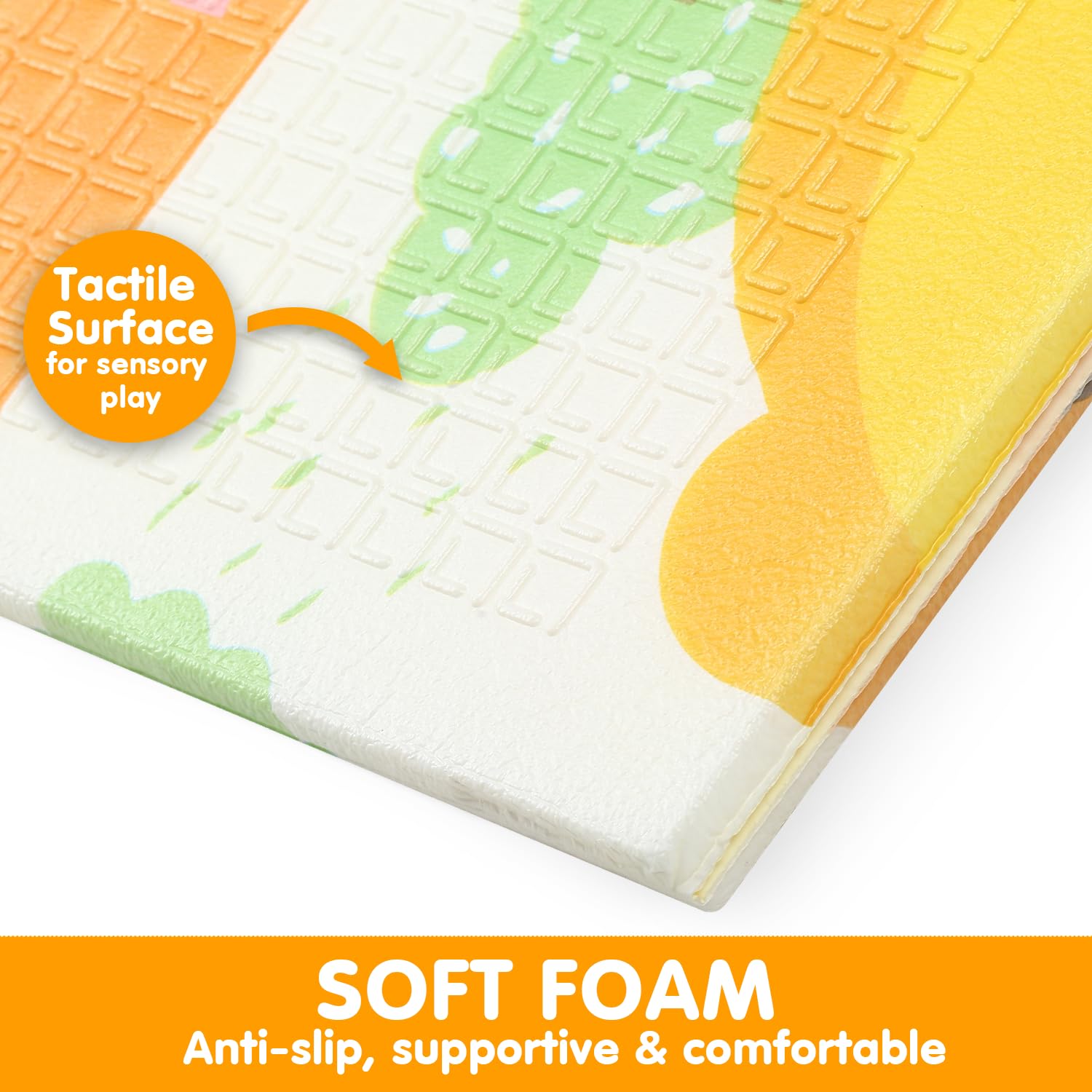 🛏️THICKER, SOFT FOAM FOR ADDED COMFORT: Our smooth foam flooring mats are 3x thicker than standard playmats for infants and toddlers; Our dense, smooth foam is supportive & snug for crawling & extra