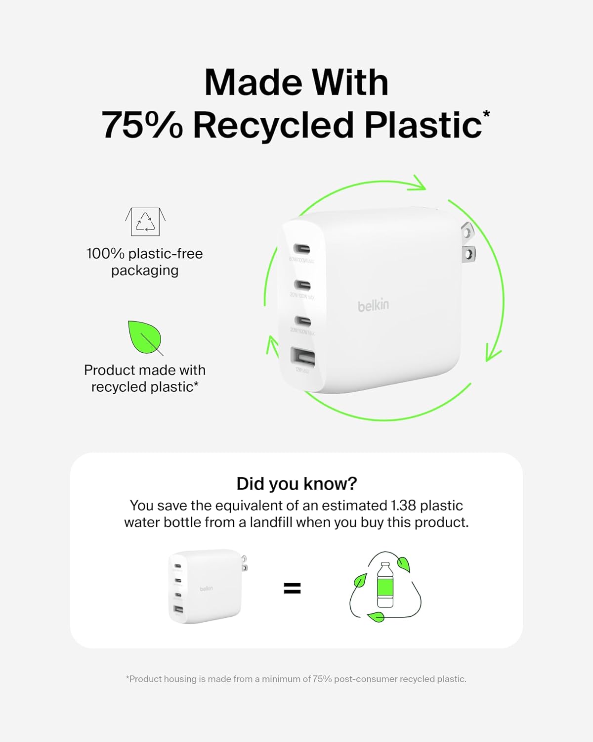 SUSTAINABLY MADE + 2-YEAR COVERAGE: This wall charger is made witih eco-friendly post-consumer recycled supplies and is available in 100% recycled plastic packaging. Plus, 2-year protection and $2,500 CEW additionally allows you to buy with peace of thoughts.