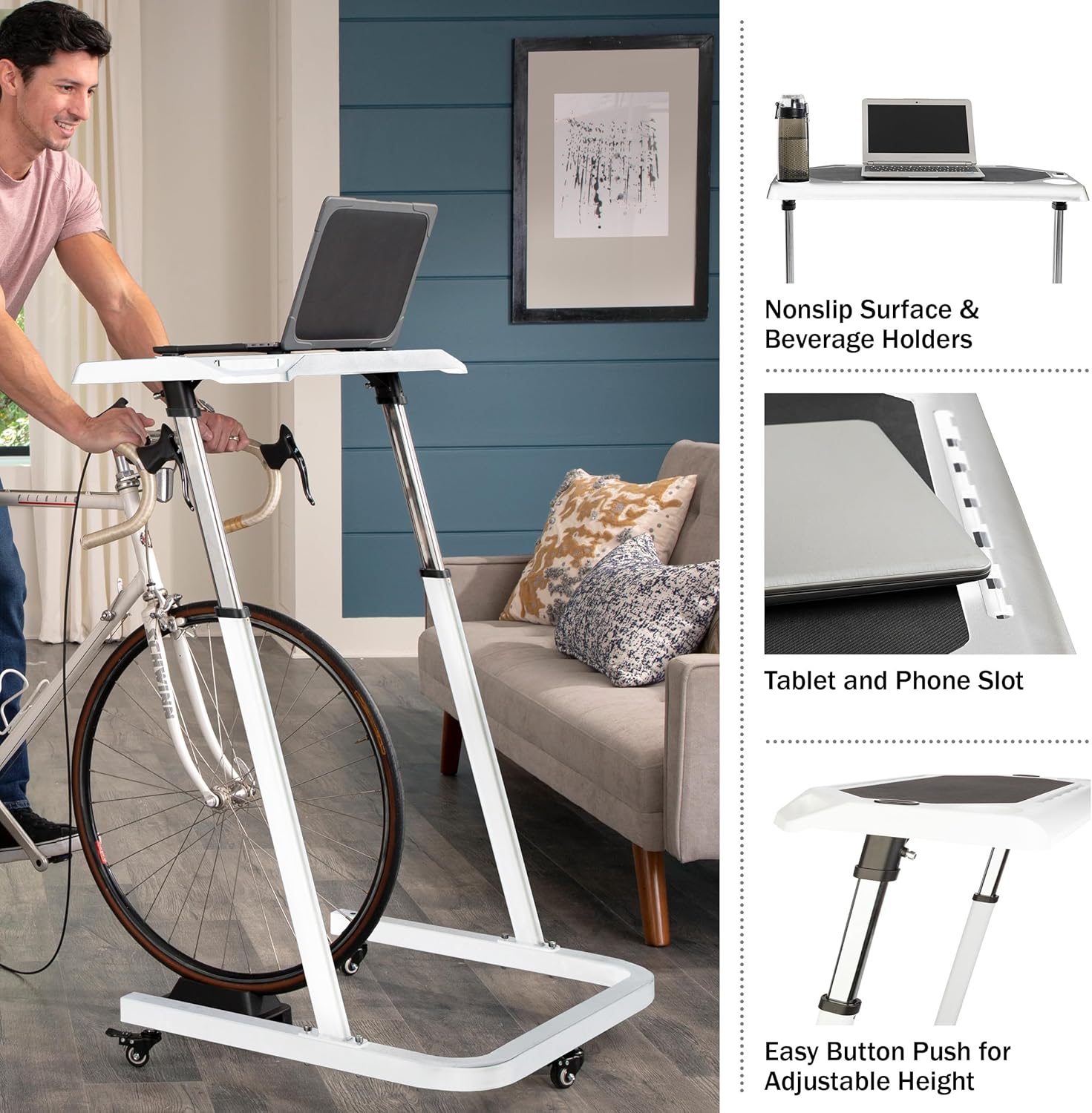 DURABLE CONSTRUCTION – Constructed from sturdy metal, this rolling desk is a long-lasting possibility that can assist you get a bit of extra motion into your day. Use this desk cycle stand year-round to take care of your coaching when climate retains you off the highway.