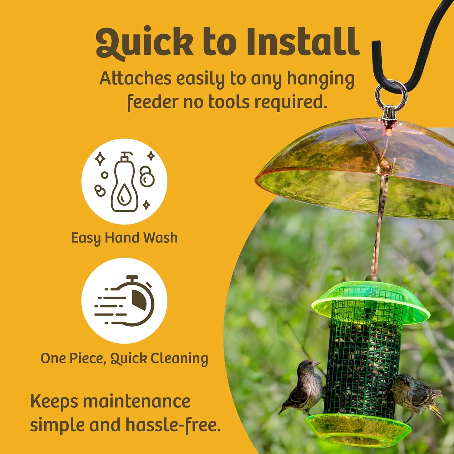 FEEDER GUARD: Hangs over chook feeders to guard each the seeds and birds from antagonistic climate circumstances