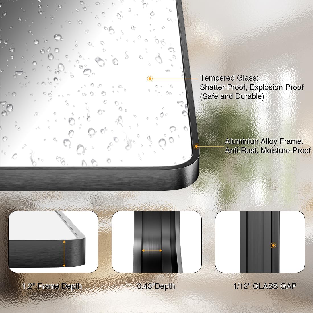 🌟【Extremely-Light-weight-Aluminium Toilet Mirror Body】:Toilet mirrors for over sink mirror body is made of top quality light-weight aluminium alloy is gorgeous and light-weight, sq. nook mirrors in a minimalist type can add texture to your house, upgraded rest room mirror frames will be simply put in even by one particular person.