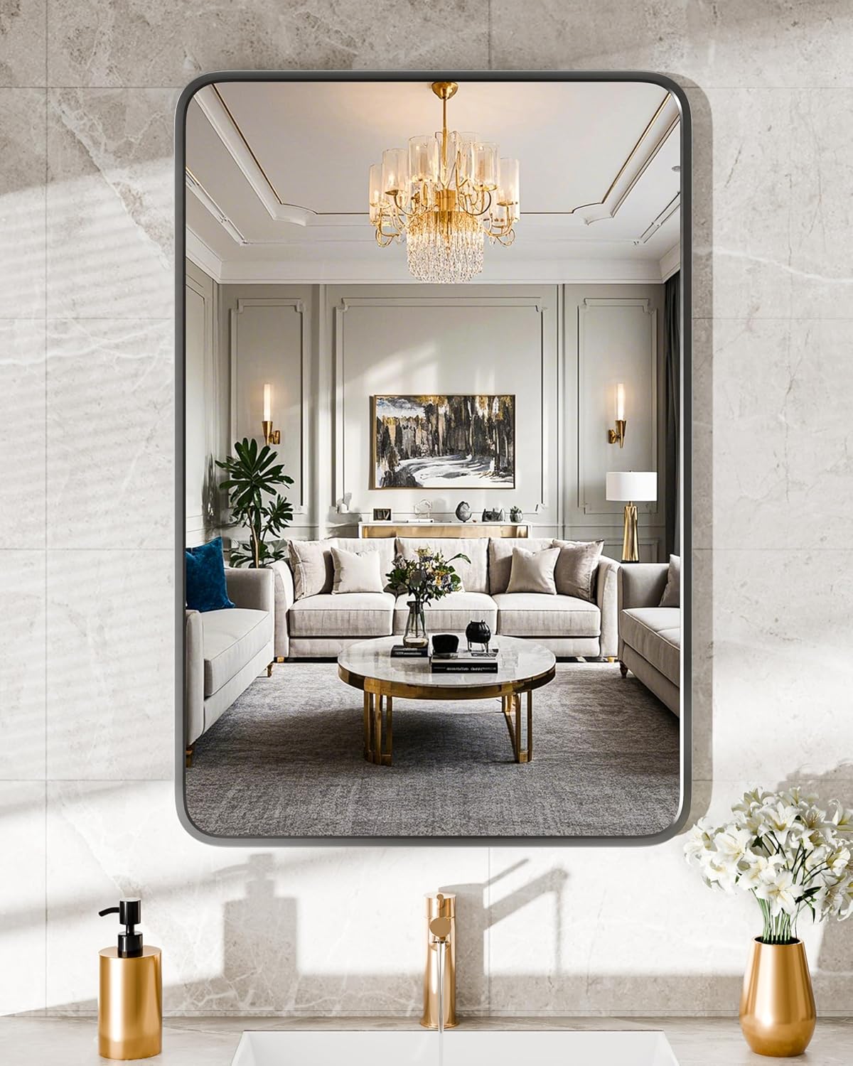 🌟[Multipurpose – Bathroom Mirror]: The sturdy rest room wall mirror contains three brackets, the brackets are product of upgraded strengthened brackets, which may absolutely face up to the burden of the toilet mirror with none fear. There are two methods to hold the mirror, you may hold it horizontally or vertically to fulfill your totally different wants, can be utilized in a wide range of eventualities, appropriate for bogs, dressers, farmhouses, bedrooms, residing rooms, eating rooms, entryways, fireplaces, corners.